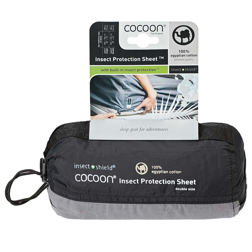 Das Spannleintuch Insect Protection Sheet Egyptian Cotton von COCOON ist aus 100% ägyptischer Baumwolle hergestellt und mit Insect Shield Imprägnierung ausgestattet. Diese Imprägnierung schützt wirkungsvoll gegen Insekten wie Moskitos, Zecken, Ameisen, Fliegen, Flöhe, Sandflöhe und Mücken. So ist der ungestörte, erholsame Schlaf auf Reisen gesichert. Auch als Hygieneschutz in Hotels gut geeignet.