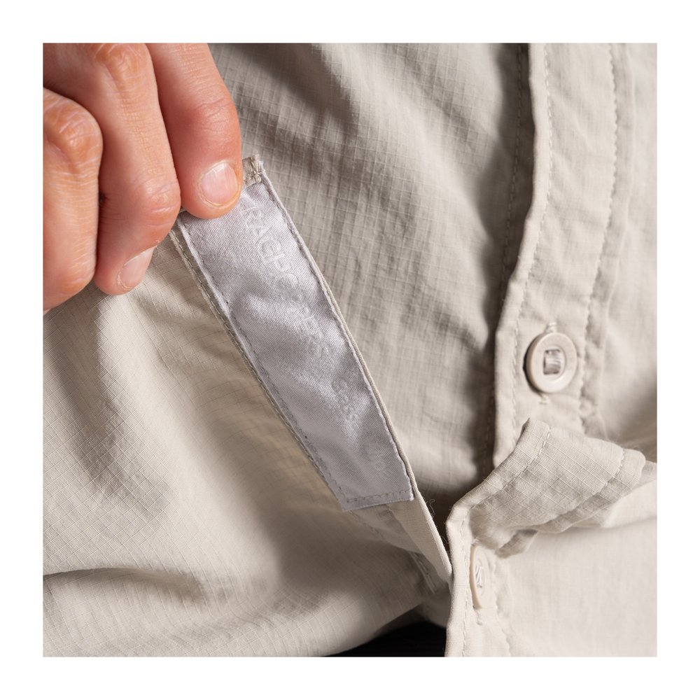 CRAGHOPPERS NosiLife Adventure Long Sleeved Shirt III Men von Craghoppers ist ein funktionales Langarmhemd, das speziell für warme und feuchte Bedingungen entwickelt wurde. Das leichte Ripstop-Gewebe ist feuchtigkeitsregulierend, schnelltrocknend und bietet integrierten Sonnenschutz (UPF 50+). Dank der NosiLife-Technologie schützt es zuverlässig vor Insekten und hemmt gleichzeitig unangenehme Gerüche. Fünf Taschen, darunter eine praktische Zip'n'Clip-Sicherheitstasche, sorgen für Stauraum, während durchdachte Details wie ein umschlagbarer Kragen, ein belüfteter Rückenteil, aufrollbare Ärmel und eine Sonnenbrillenreinigung zusätzlichen Komfort bieten.