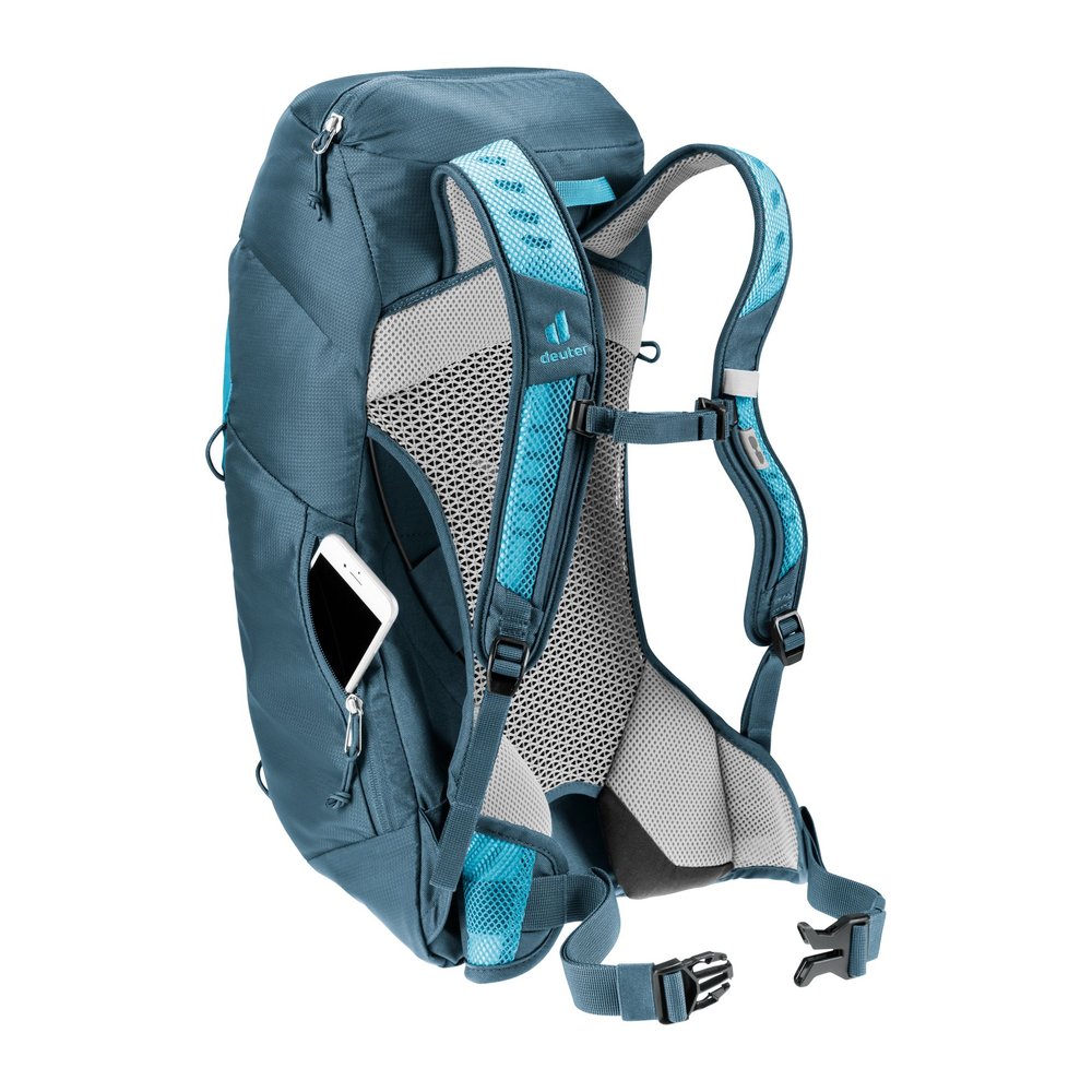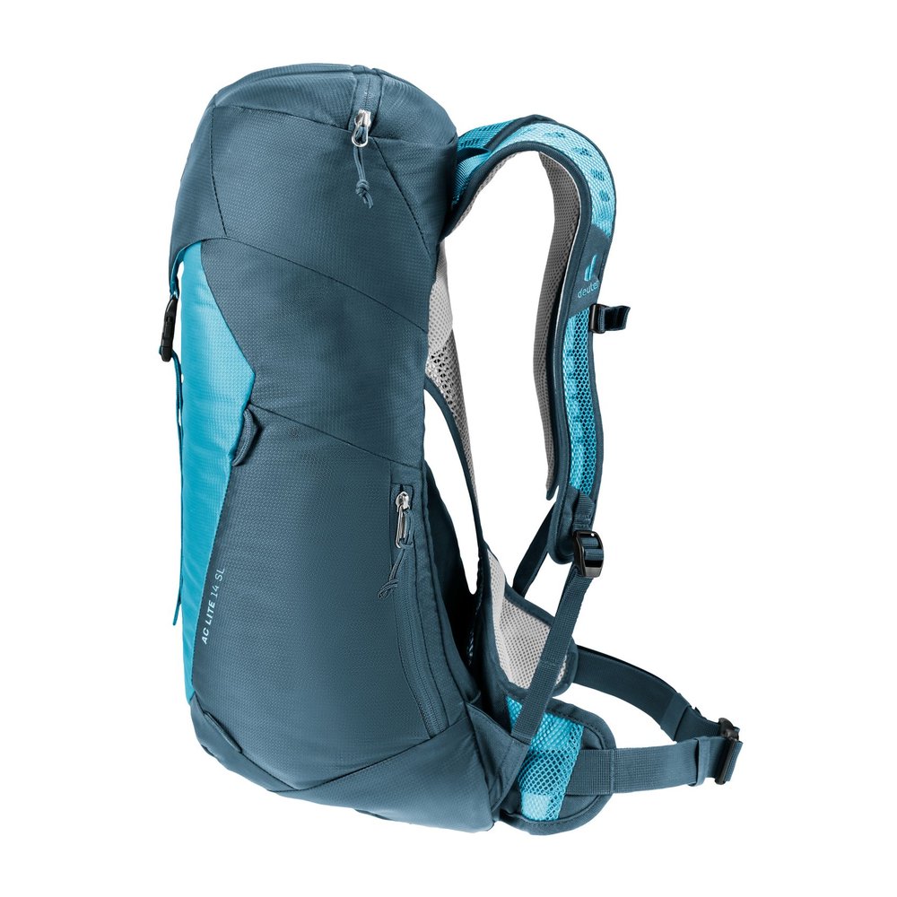 DEUTER AC Lite 14 SL ist ein leichter Wanderrucksack für Damen, ideal für Tagesausflüge. Das Aircomfort-Rückensystem sorgt für maximale Belüftung und eine hervorragende Gewicht-Komfort-Ratio. Mit geräumigem Hauptfach, elastischen Seitentaschen, Deckelfächern, Smartphone-Tasche und Außenschlaufen bietet er flexible Organisation und Befestigungsmöglichkeiten. Helmnetz- und Trinksystem-kompatibel (bis 2 L) sowie mit abnehmbarer Regenhülle ausgestattet, ist der Rucksack funktional und vielseitig. Hergestellt aus bluesign®-zertifiziertem Material, zu 50 % aus recycelten Garnen, verbindet er Nachhaltigkeit mit Langlebigkeit.