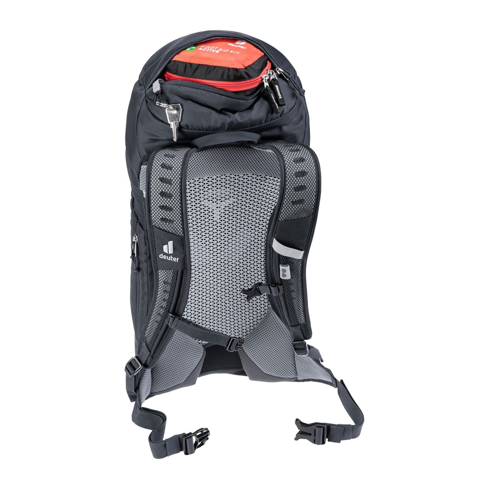 Der DEUTER AC Lite 16 ist ein leichter Wanderrucksack für Tagesausflüge, der optimale Belüftung und hohen Tragekomfort bietet. Das Aircomfort-Rückensystem sorgt für maximale Luftzirkulation, während das geräumige Hauptfach und die Smartphone-Tasche schnellen Zugriff auf wichtige Ausrüstung ermöglichen. Zusätzliche Verstauoptionen bieten elastische Seitentaschen, Deckelfächer und Befestigungsschlaufen außen am Rucksack. Der Rucksack ist trinksystemkompatibel (bis 2 L), helmnetzfähig und verfügt über eine abnehmbare Regenhülle, kombiniert mit ergonomischen Hüftflossen für komfortables Tragen. Gefertigt aus bluesign®-zertifiziertem Material mit 50 % recyceltem Garn, steht er für Nachhaltigkeit und Langlebigkeit.