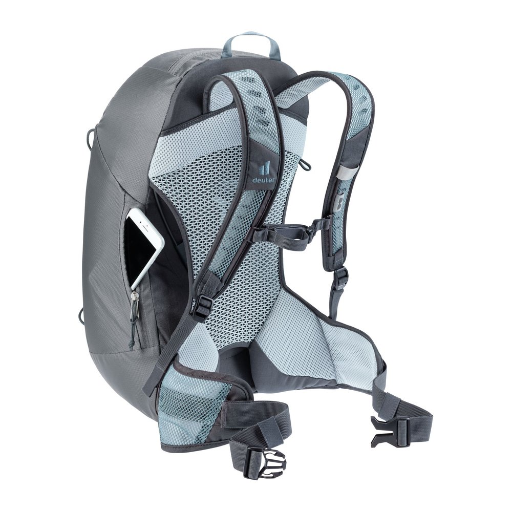 Der DEUTER AC Lite 21 SL ist ein leichter Wanderrucksack für sportliche Tagesausflüglerinnen, der maximale Belüftung und komfortables Tragen bietet. Das Aircomfort-Rückensystem sorgt für optimale Luftzirkulation, während die geräumige Frontöffnung mit Reißverschluss schnellen Zugriff auf das Hauptfach ermöglicht. Zusätzliche Verstaumöglichkeiten bieten die Smartphone-Tasche, seitliche Netztaschen und Befestigungsschlaufen. Ergonomische Hüftflossen, nachrüstbares Helmnetz und die trinksystemkompatible Ausstattung runden die Funktionalität ab. Gefertigt aus bluesign®-zertifiziertem Material mit 50 % recyceltem Garn, kombiniert der Rucksack Nachhaltigkeit mit leichter Handhabung.