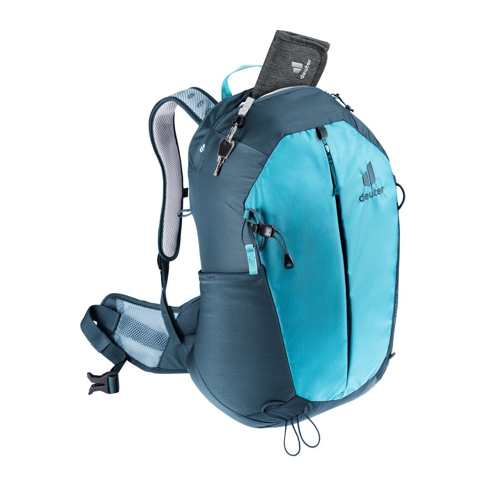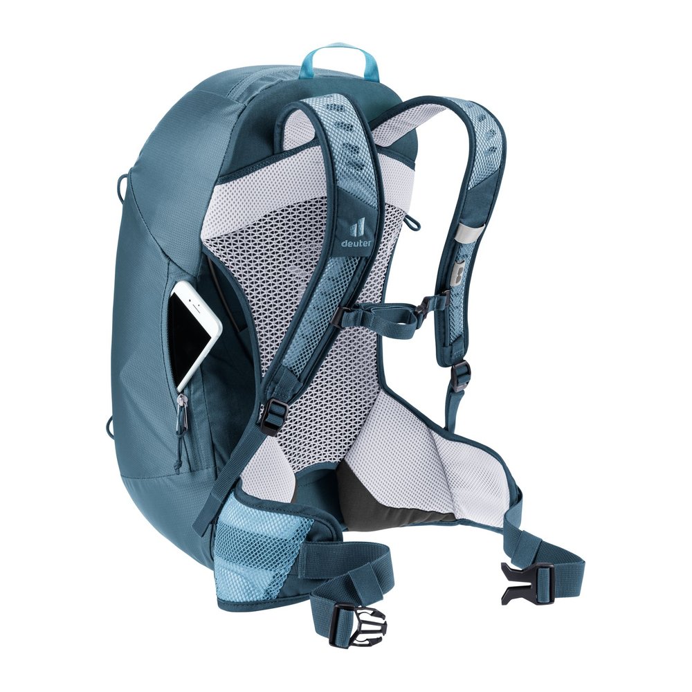 Der DEUTER AC Lite 21 SL ist ein leichter Wanderrucksack für sportliche Tagesausflüglerinnen, der maximale Belüftung und komfortables Tragen bietet. Das Aircomfort-Rückensystem sorgt für optimale Luftzirkulation, während die geräumige Frontöffnung mit Reißverschluss schnellen Zugriff auf das Hauptfach ermöglicht. Zusätzliche Verstaumöglichkeiten bieten die Smartphone-Tasche, seitliche Netztaschen und Befestigungsschlaufen. Ergonomische Hüftflossen, nachrüstbares Helmnetz und die trinksystemkompatible Ausstattung runden die Funktionalität ab. Gefertigt aus bluesign®-zertifiziertem Material mit 50 % recyceltem Garn, kombiniert der Rucksack Nachhaltigkeit mit leichter Handhabung.