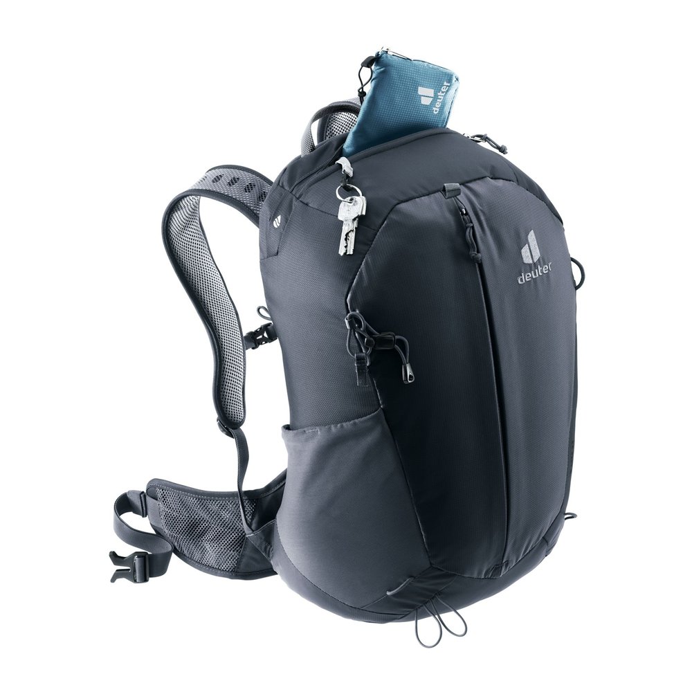 Der DEUTER AC Lite 23 ist ein leichter Wanderrucksack für sportliche Tagesausflügler, der optimale Belüftung und hohen Tragekomfort bietet. Das Aircomfort-Rückensystem sorgt für maximale Luftzirkulation, während die geräumige Frontöffnung mit Reißverschluss schnellen Zugriff auf das Hauptfach ermöglicht. Zusätzliche Verstaumöglichkeiten bieten die Smartphone-Tasche, seitliche Netztaschen und Befestigungsschlaufen. Ergonomische Hüftflossen, nachrüstbares Helmnetz und die trinksystemkompatible Ausstattung runden die Funktionalität ab. Gefertigt aus bluesign®-zertifiziertem Material mit 50 % recyceltem Garn, verbindet der Rucksack Nachhaltigkeit mit leichter Handhabung.