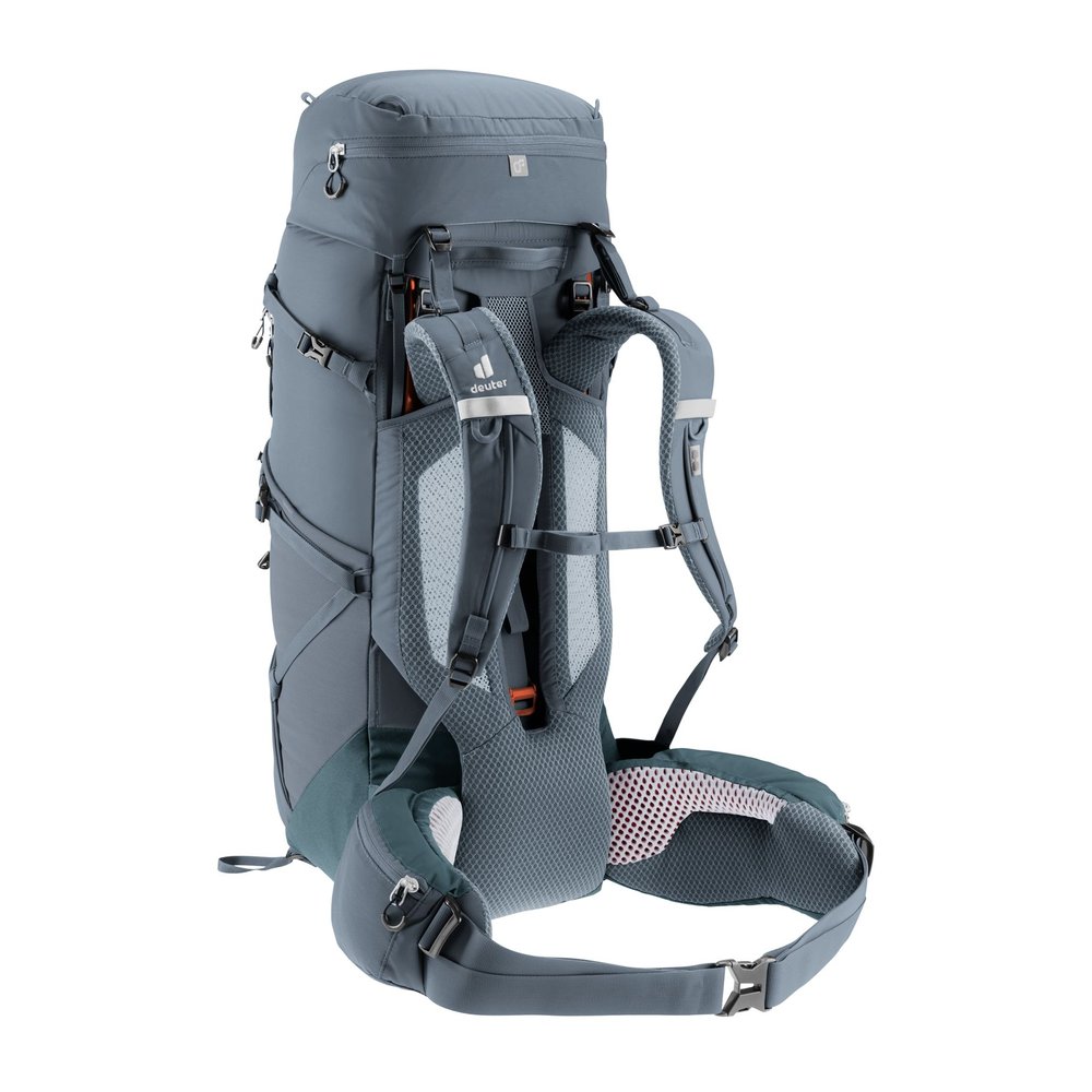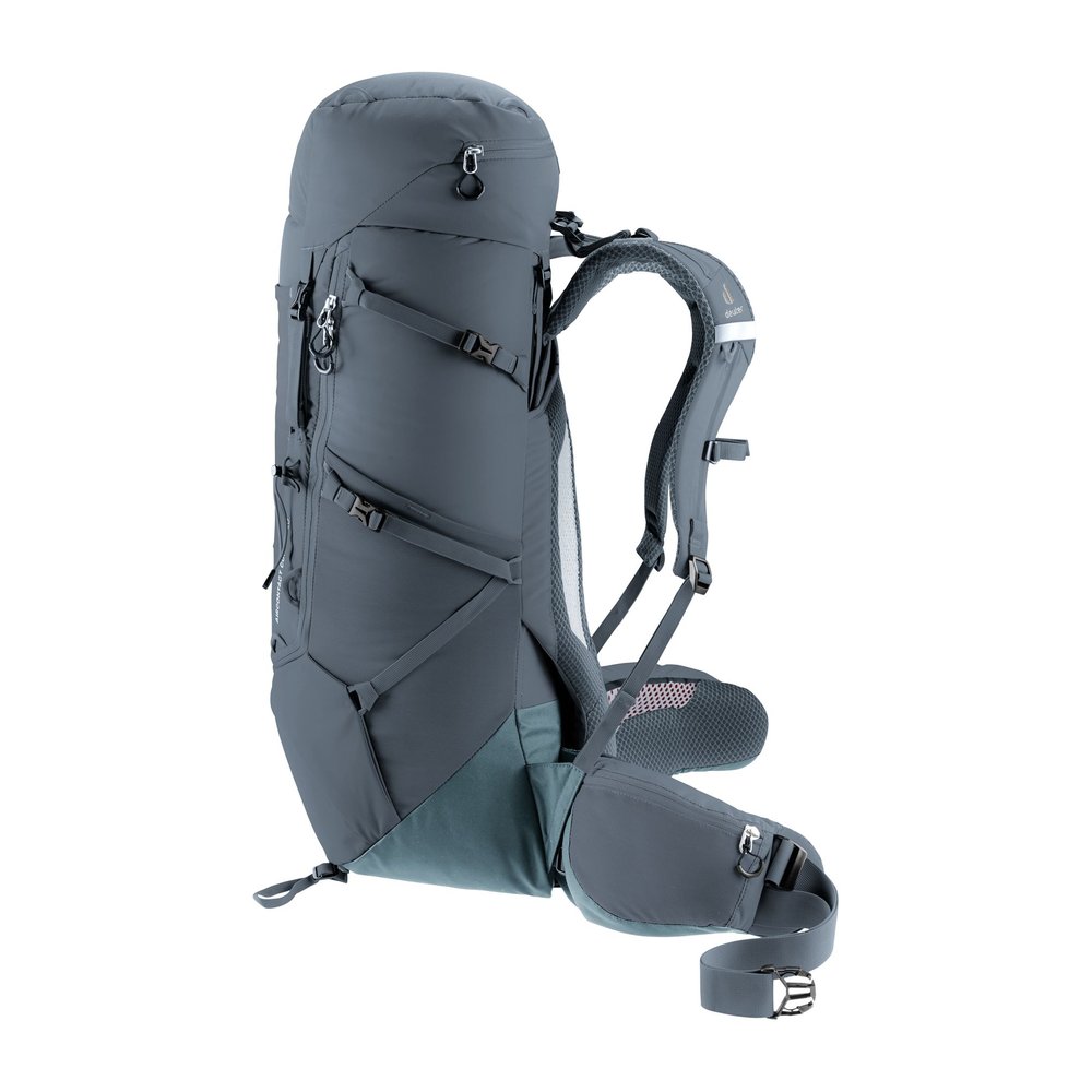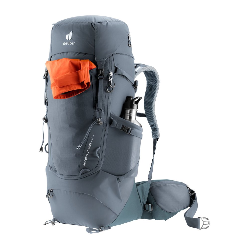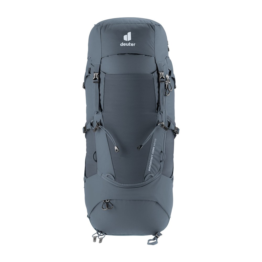 Der DEUTER Aircontact Core 40+10 ist ein komfortabler Trekkingrucksack, der für anspruchsvolle Wanderungen hohe Vielseitigkeit und optimale Lastverteilung bietet. Mit abnehmbaren Kompressionsriemen lassen sich unterschiedliche Ausrüstungsgegenstände flexibel befestigen. Das Aircontact-Rückensystem mit Air Spacer Mesh und Belüftungskanal sorgt zusammen mit ergonomischen Active Fit Schulterträgern, Pull-Forward-Hüftflossen und dem stabilen Aluminium-Y-Rahmen für hohen Tragekomfort und effiziente Lastübertragung. Durchdachte Organisationseinheiten wie Stretch-Innenfach, elastische Seitentaschen, aufklappbarer Zwischenboden und Deckeltasche unterstützen die Übersicht und schnelle Zugänglichkeit der Ausrüstung. Hergestellt aus robustem, langlebigem Material, kombiniert der Rucksack Komfort, Stabilität und Funktionalität.
