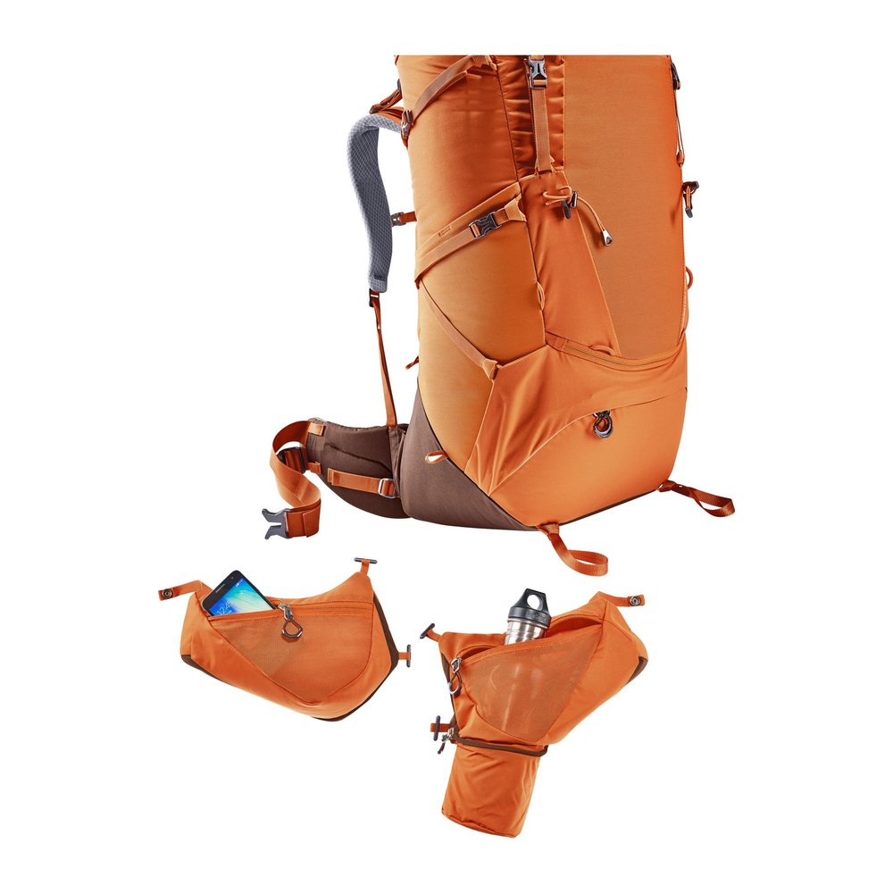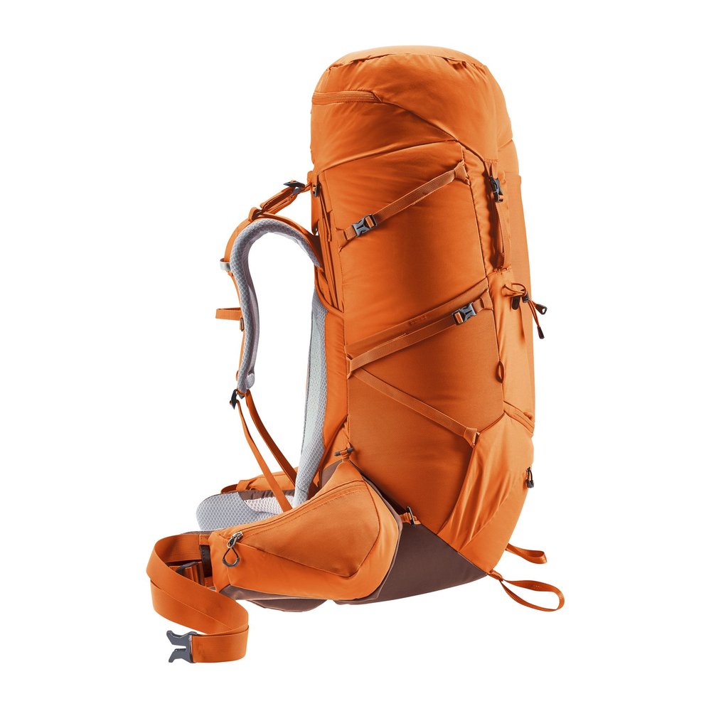 Der DEUTER Aircontact Core 65+10 SL ist ein großer Trekkingrucksack, der speziell für ambitionierte Fernwandererinnen entwickelt wurde. Das Aircontact-Rückensystem mit Air Spacer Mesh und Belüftungskanal, die ergonomischen Active Fit Schulterträger, beweglichen Hüftflossen und das Lumbalpad garantieren eine komfortable Lastübertragung auch bei voller Beladung. Mit der J-förmigen Frontöffnung, abnehmbaren Hüftflossentaschen (3 L) und einer ausklappbaren Tasche für Trinkflaschen bis 1,5 L ist der Zugriff auf Ausrüstung einfach und schnell. Zusätzliche Features wie abnehmbare Kompressionsriemen, Stretch-Innenfach, elastische Seitentaschen und Deckeltasche sorgen für durchdachte Organisation. Robustes Material gewährleistet Langlebigkeit und Strapazierfähigkeit auf langen Touren.