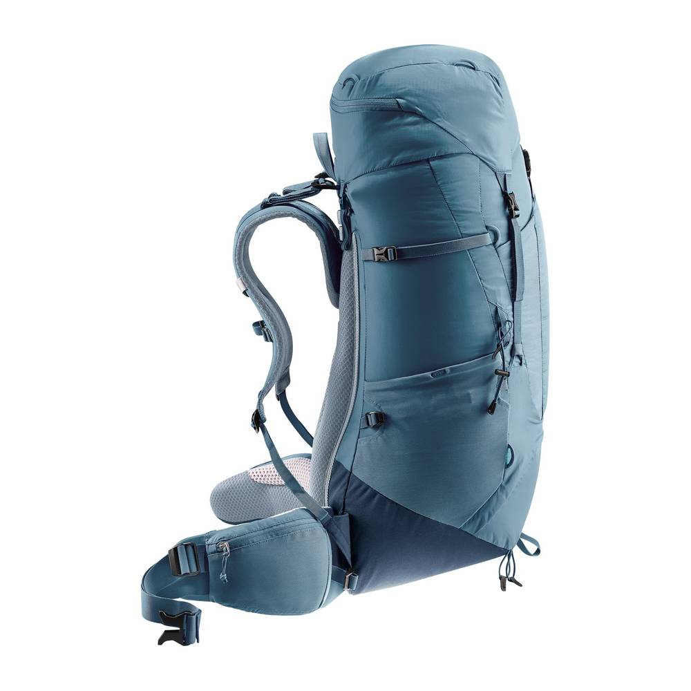 Der Aircontact Lite 50 + 10 von DEUTER ist die ideale Lösung für ambitionierte Fernwanderer, die ein großes Volumen bei gleichzeitig geringem Eigengewicht suchen. Dank der praktischen VariQuick-Rückenlängenanpassung und den präzise sitzenden, anschmiegsamen ECL-Hüftflossen bietet der Rucksack einen stabilen Halt und eine hocheffiziente Lastübertragung. Der innovative Aircontact Lite Kontaktrücken aus offenporigem Funktionsschaum sorgt mit seinem Belüftungskanal für eine hervorragende Luftzirkulation und schont gleichzeitig die Wirbelsäule. Im Einklang mit der Ökodesign-Verordnung (ESPR) punktet das Modell durch eine ressourcenschonende Materialwahl, wie dem recycelten 600D PES, das zudem bluesign®-zertifiziert ist. Für maximale Stabilität sorgt der bewährte X-Rahmen, während der abnehmbare Rucksackdeckel eine flexible Volumenerweiterung um 10 Liter ermöglicht. Praktische Features wie die elastische Fronttasche, eine integrierte Stockhalterung und die Vorrichtung für ein Trinksystem bis 3 Liter machen diesen Trekkingrucksack zum unverzichtbaren Partner für lange Tage in der Natur.