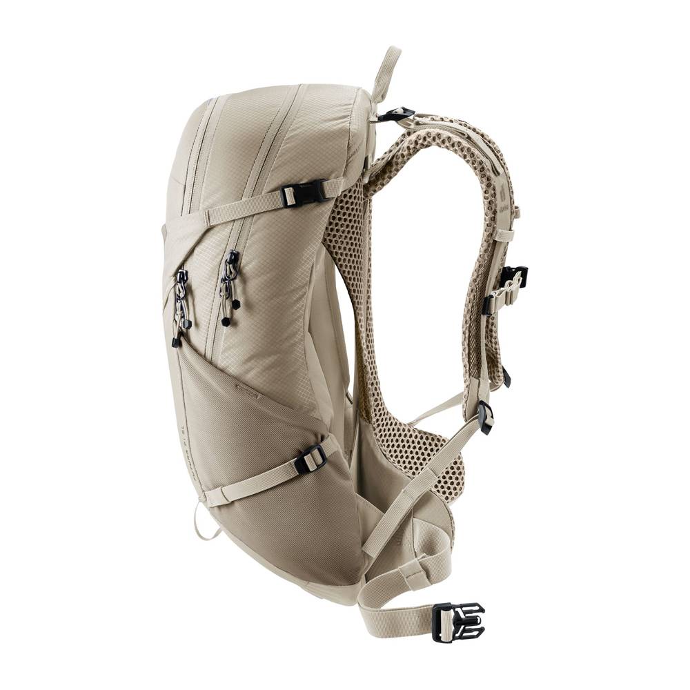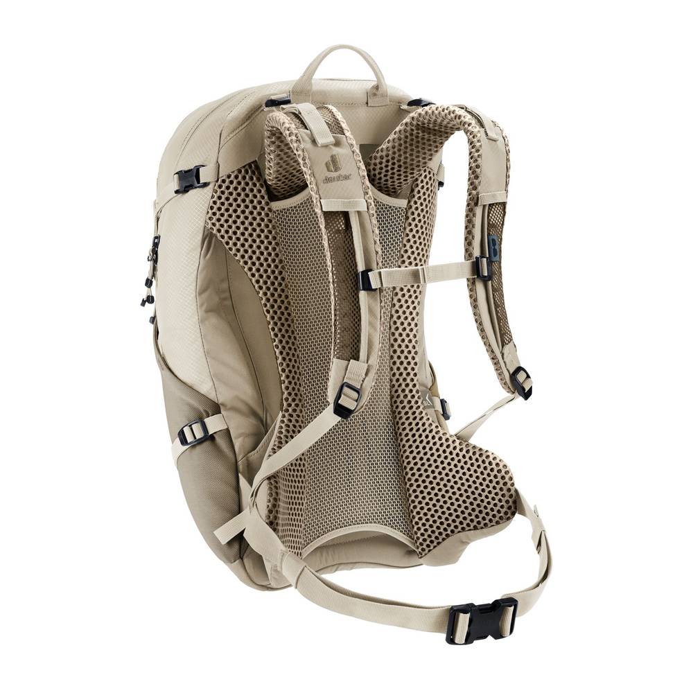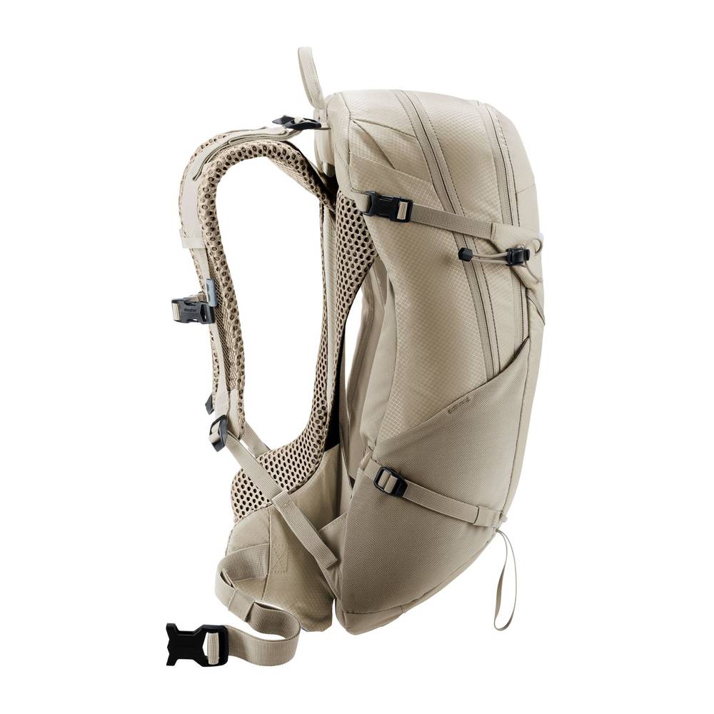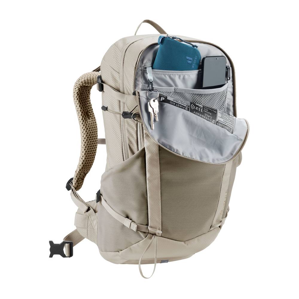 Der DEUTER Futura 21 SL ist der ideale Begleiter für Frauen, die bei ihren Tageswanderungen keine Kompromisse bei Komfort und Belüftung eingehen wollen. Dieser leichte Wanderrucksack von DEUTER wurde speziell auf eine schmalere Statur abgestimmt und bietet einen frauenspezifischen Fit, der perfekt sitzt. Herzstück ist das innovative Aircomfort-Rückensystem, das zusammen mit den ActiveFit-Schulterträgern und den belüfteten Hüftflossen für eine maximale Luftzirkulation und eine optimale Gewichtsverlagerung sorgt. Dank der Pull-Forward-Verstellung lässt sich der Rucksack mühelos anpassen, während der dauerhaft elastische Federstahlrahmen die Last gleichmäßig verteilt. Praktische Features wie die Stockhalterung, eine Brillenhalterung und die Trinksystem-Kompatibilität (bis 3 L) machen deine Tour noch komfortabler. Auch für wechselhaftes Wetter bist du dank der enthaltenen Regenhülle bestens gerüstet. Im Rahmen der Ökodesign-Verordnung (ESPR) überzeugt der Rucksack durch Nachhaltigkeit: Er ist ein bluesign® Produkt, ClimatePartner zertifiziert und wird aus recyceltem Hauptmaterial sowie komplett ohne PFAS gefertigt. Kleinteile finden in der Reißverschlusstasche oben oder dem Schlüsselclip sicher ihren Platz.