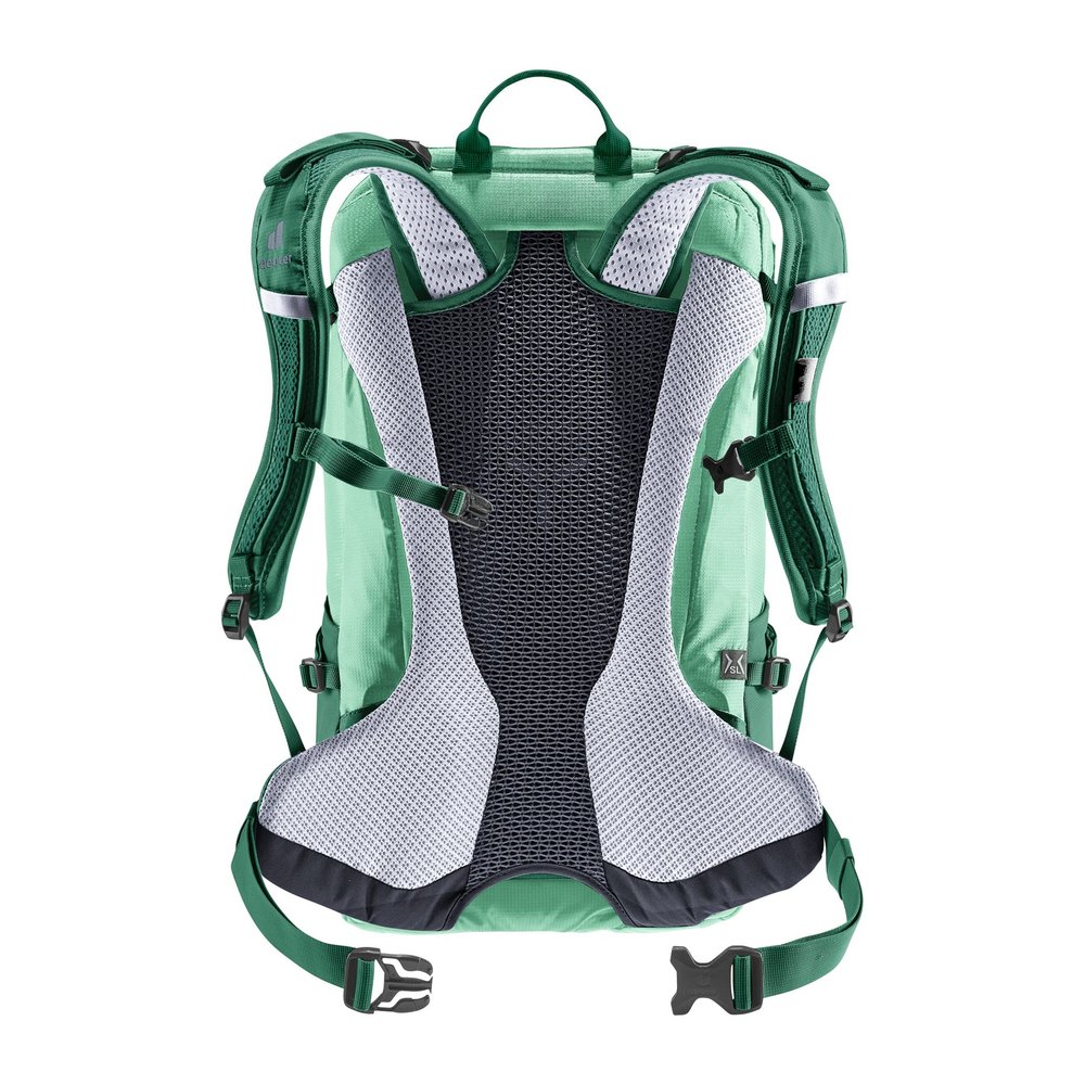 DEUTER Futura 21 SL ist ein leichter und funktioneller Wanderrucksack, der speziell auf die weibliche Anatomie zugeschnitten ist. Mit kürzerem Rücken, schmaleren Schulterträgern und konisch geformten Hüftflossen bietet er optimalen Tragekomfort auf Tageswanderungen. Das luftige Aircomfort-Rückensystem mit neuem Mesh sorgt für maximale Belüftung und verhindert Hitzestau am Rücken. Feuchte Kleidung kann unterwegs in der elastischen Fronttasche trocknen, während zahlreiche Fächer eine durchdachte Organisation ermöglichen. Dank bluesign®-zertifizierten Materialien und einem hohen Anteil recycelter Fasern ist der Rucksack zudem besonders nachhaltig. Ideal für Wanderinnen, die Wert auf Komfort, Funktionalität und umweltbewusste Herstellung legen.