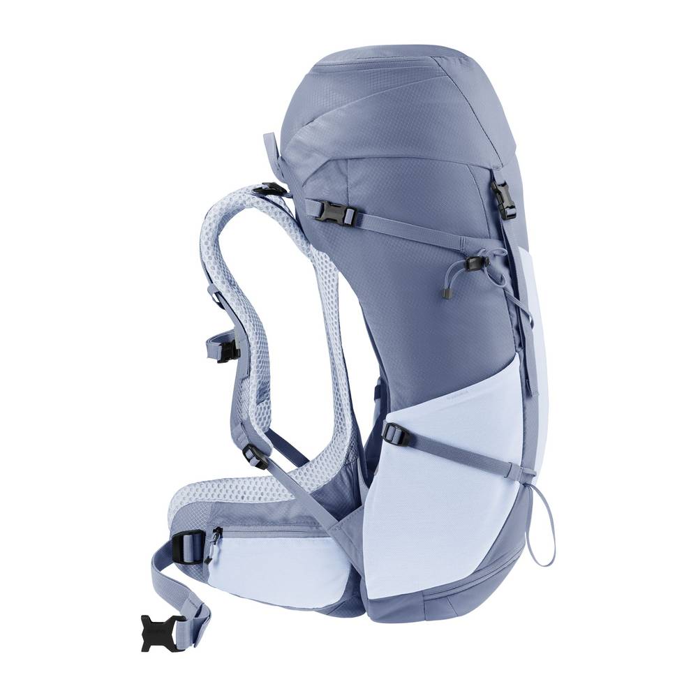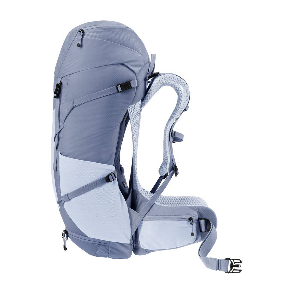 Der DEUTER Futura 30 SL ist der ideale Begleiter für anspruchsvolle Wanderinnen, die auf Mehrtagestouren oder ausgedehnten Tagesausflügen höchsten Wert auf Ergonomie und Belüftung legen. Dieser leichte Wanderrucksack von DEUTER wurde gezielt mit einem frauenspezifischen Fit (SL) entwickelt, der perfekt auf eine schmalere Anatomie abgestimmt ist. Das bewährte Aircomfort-Rückensystem mit seinem innovativen Netzrücken garantiert eine maximale Belüftung, während der dauerhaft elastische Federstahlrahmen die Last gleichmäßig verteilt. Dank der ActiveFit-Schulterträger und der gepolsterten Hüftflossen mit Pull-Forward-Verstellung genießt du eine optimale Gewichtsverlagerung und einen stabilen Sitz in jedem Gelände. Ein besonderes Highlight für die Organisation deiner Ausrüstung ist das separate Bodenfach mit einem aufklappbaren Zwischenboden, das einen schnellen Zugriff ermöglicht. Zudem sorgen die Stockhalterung, eine Brillenhalterung sowie die Trinksystem-Kompatibilität (bis 3 L) für volle Funktionalität am Berg. Im Einklang mit der Ökodesign-Verordnung (ESPR) punktet das Modell durch Nachhaltigkeit: Er ist ein bluesign® Produkt, ClimatePartner zertifiziert, wird aus recyceltem Hauptmaterial (210D REC PA X-GRID) sowie vollständig ohne PFAS gefertigt. Eine Regenhülle ist enthalten, damit dein Gepäck auch bei schlechtem Wetter trocken bleibt.