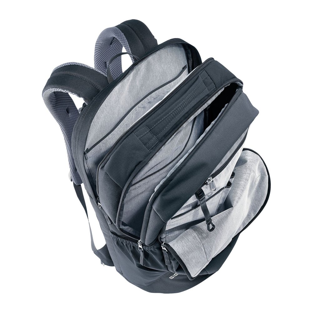 DEUTER Giga ist ein urbaner Lifestyle-Rucksack, der speziell für Pendler entwickelt wurde, die Wert auf Organisation und Komfort legen. Das Airstripes Rückensystem sorgt für optimale Belüftung und angenehmes Tragen auch an langen Tagen. Praktische Features wie Laptopfach bis 15 Zoll, Fach für Stifte und Telefon, Innenfach für Wertgegenstände und Dokumentenfach ermöglichen effiziente Organisation, während gepolsterte Tragegriffe und standfester Boden Komfort und Stabilität bieten. Für flexible Anpassung sorgen stufenlos verstellbarer Brustgurt und abnehmbarer Bauchgurt.