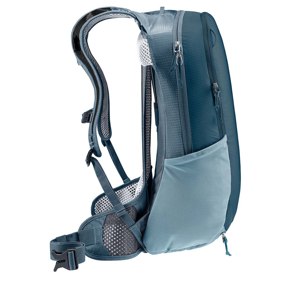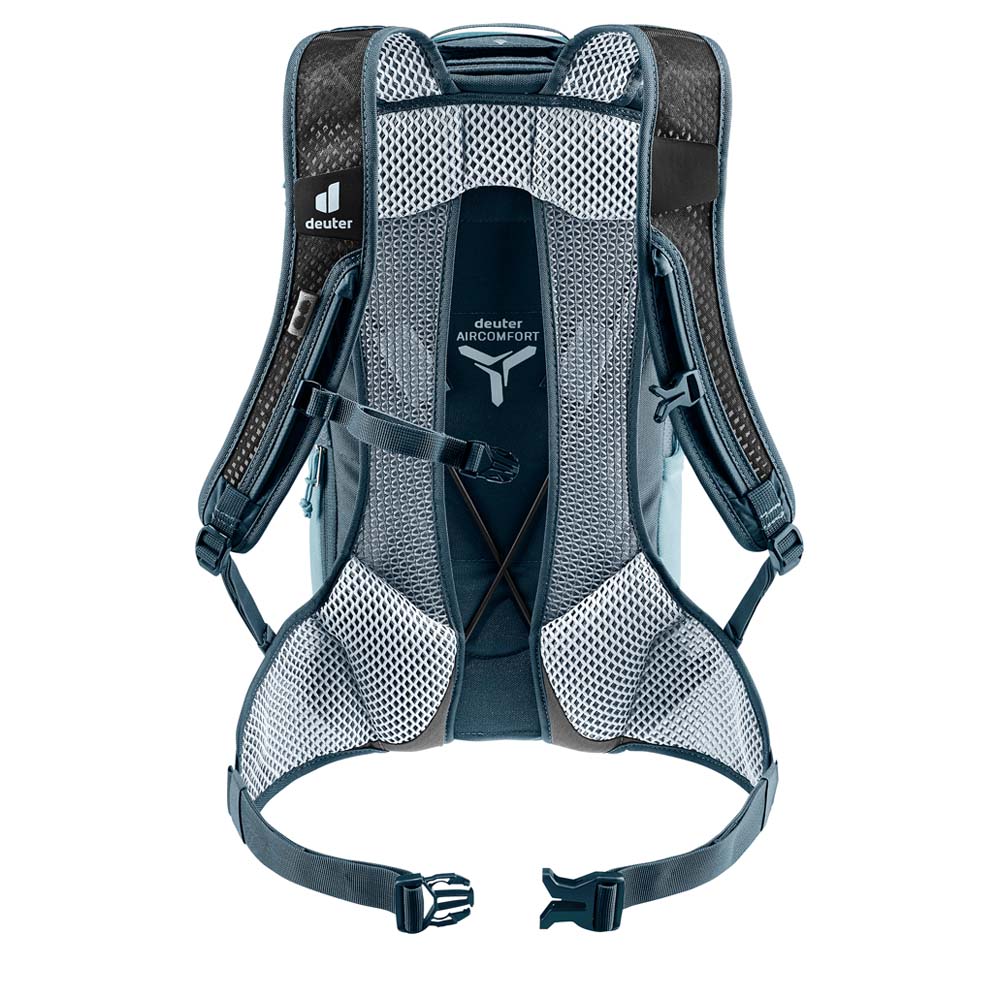 Extrem leichter, stabiler Bike-Rucksack mit hervorragender Gewicht-Komfort-Ratio der Race Air 10 von Deuter. Das bikespezifische Aircomfort Rückensystem mit mittig geteiltem Netzrücken reduziert die Auflagefläche und verschafft der, in Fahrhaltung gekrümmten Wirbelsäule mehr Platz. Netzhüftflossen, perforierte Schulterträger und Rückenpolster sorgen für maximale Belüftung und kompakten Sitz. Der klimaneutrale, PFAS-freie Rucksack für sportliche Mountainbiker*innen ist aus bluesign® zertifiziertem Hauptmaterial aus 100 % recycelten Stoffen und 100 % umweltfreundlich hergestellten, ressourcenschonenden Bestandteilen.