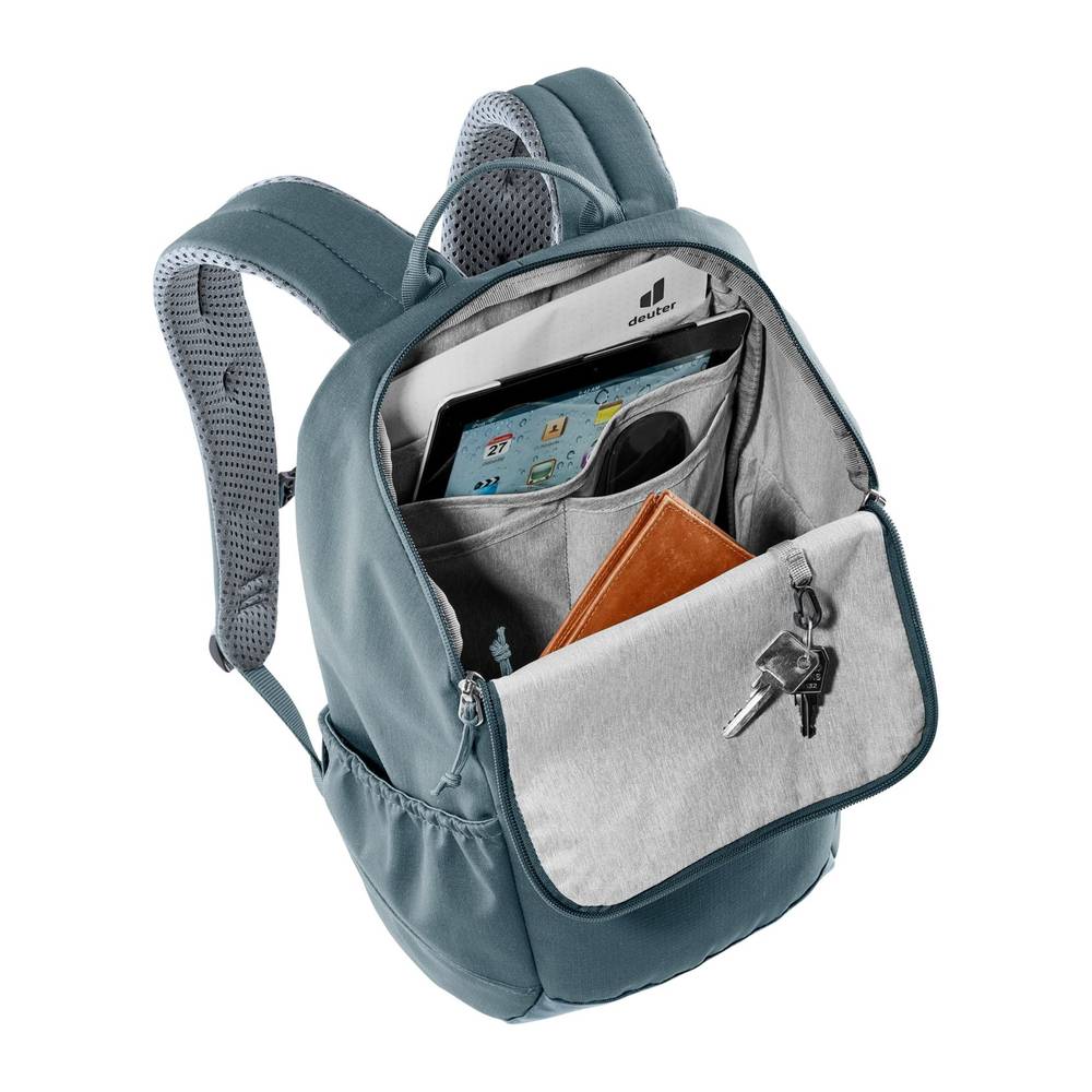 Der Deuter Stepout 16 ist der moderne Lifestyle-Rucksack, der Funktionalität und urbanes Design perfekt vereint. Dank des bewährten Airstripes Rückensystems und perforierter Schulterträger bietet er eine hervorragende Luftzirkulation auf über 80 % des Rückens, was ihn zum idealen Begleiter für Büro, Schule oder Universität macht. Die großzügige U-Zip-Öffnung ermöglicht einen schnellen Zugriff auf das Hauptfach, in dem Dokumente und ein Tablet sicher in speziellen Fächern verstaut werden können. Ein seitliches Handyfach und eine elastische Seitentasche halten die wichtigsten Utensilien jederzeit griffbereit. In Sachen Nachhaltigkeit setzt der Stepout 16 ein starkes Statement: Das Material besteht aus 20 recycelten 0,5-Liter-PET-Flaschen. Als bluesign® Product, das zudem mit dem Grünen Knopf zertifiziert ist, erfüllt er strengste ökologische und soziale Standards. Im Einklang mit der Ökodesign-Verordnung (ESPR) ist der Rucksack auf Langlebigkeit ausgelegt und wird vollständig ohne PFAS hergestellt.
