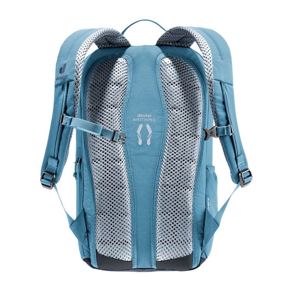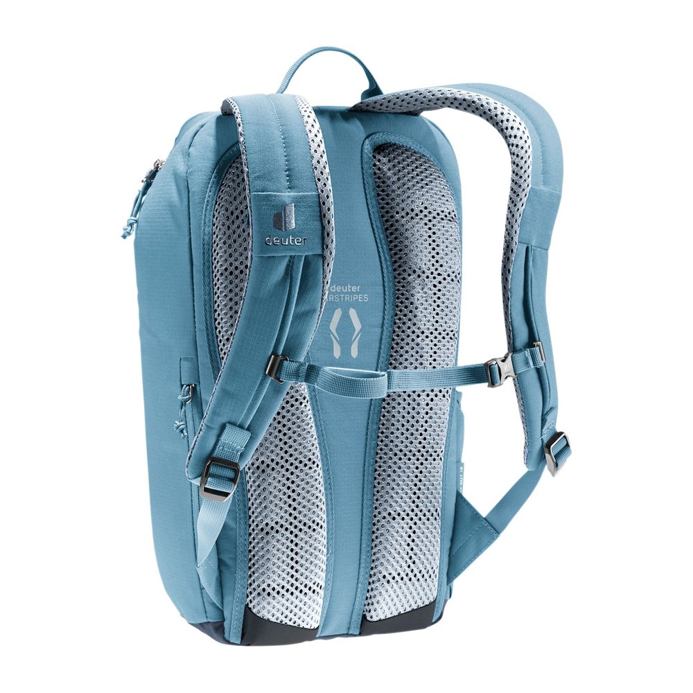 DEUTER Stepout 16 ist ein nachhaltiger und vielseitiger Lifestyle-Rucksack, der optimal für Alltag und kurze Touren geeignet ist. Das Airstripes Rückensystem kombiniert geringe Rückenauflage mit perforierten Schulterträgern für maximale Luftzirkulation und hohen Tragekomfort. Praktische Features wie Dokumenten- und Laptopfach, seitliches Handyfach, Tasche für Tablet und Innenfach für Wertgegenstände sorgen für perfekte Organisation. Die große U-Zip Öffnung ermöglicht schnellen Zugriff auf den Rucksackinhalt. Das Material besteht aus 100 % recyceltem, bluesign®-zertifiziertem Polyester, das aus PET-Flaschen gewonnen wurde, und bietet Langlebigkeit mit natürlicher Optik.