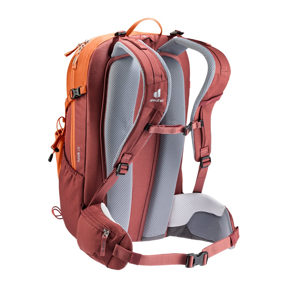 Der DEUTER Tour 19 ist der ideale Tourenrucksack für kurze Spritztouren. Das Airstripes-Rückensystem sorgt für großen Tragekomfort und eine gute Belüftung. Zusammen mit den ergonomisch geformten Schulterträgern und Hüftflossen, den Lageverstellriemen und dem stufenlos verstellbaren Brustgurt wird der Rücken optimal entlastet. Das Hauptfach sowie die Front- und Seitentaschen bieten Platz für persönliche Gegenstände, und die Halterung auf der Rucksackfront bietet Platz für Wanderstöcke.