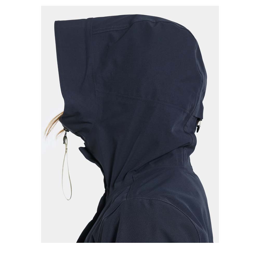Die DIDRIKSONS Silja Womens Jacket ist eine moderne und funktionale Regenjacke für Damen, die durch ihren klaren Schnitt und zuverlässigen Wetterschutz überzeugt. Dank der Stormsystem-Technologie und vollständig verschweißter Nähte bietet sie eine einhundertprozentige Wind- und Wasserdichtigkeit. Das Material besteht aus einem geschmeidigen Gewebe mit einer matten Oberfläche, das nicht nur optisch anspricht, sondern auch eine hohe Atmungsaktivität aufweist, um Feuchtigkeit von innen nach außen zu leiten. Der Einsatzbereich dieser Jacke ist vielseitig und reicht vom täglichen Einsatz in der Stadt bis hin zu Wanderungen bei wechselhaftem Wetter. Ein wesentlicher Vorteil ist das leichte Design, das eine hohe Bewegungsfreiheit ermöglicht und sich ideal für das Schichtprinzip eignet. Die Jacke verfügt über eine fest gewachsene, verstellbare Kapuze mit einem hohen Kragen, der das Gesicht vor Wind und Regen schützt. Ein verstellbarer Saum und elastische Ärmelbündchen sorgen für eine individuelle Passform und verhindern das Eindringen von Zugluft. Praktische Seitentaschen mit Reißverschluss bieten sicheren Stauraum für persönliche Gegenstände, während die PFC-freie wasserabweisende Veredelung die Umwelt schont.