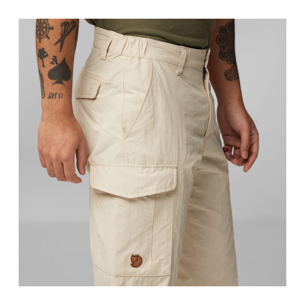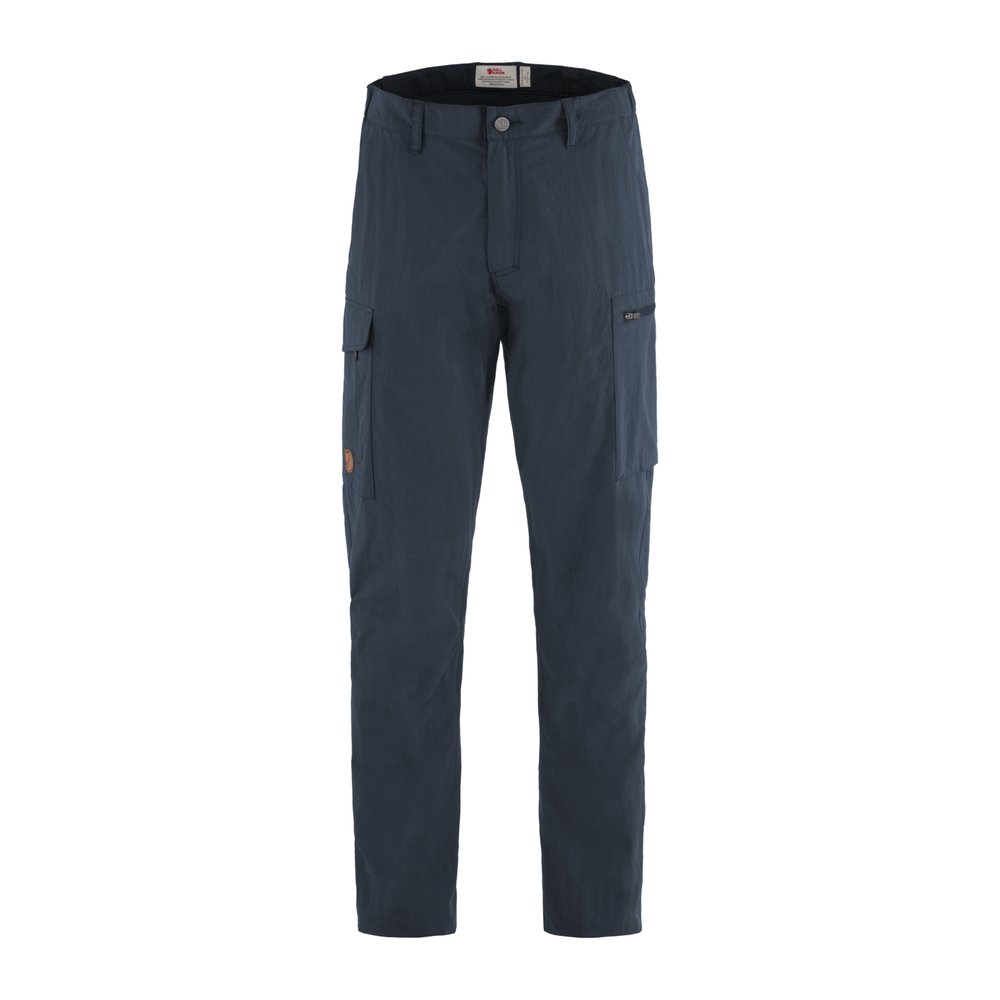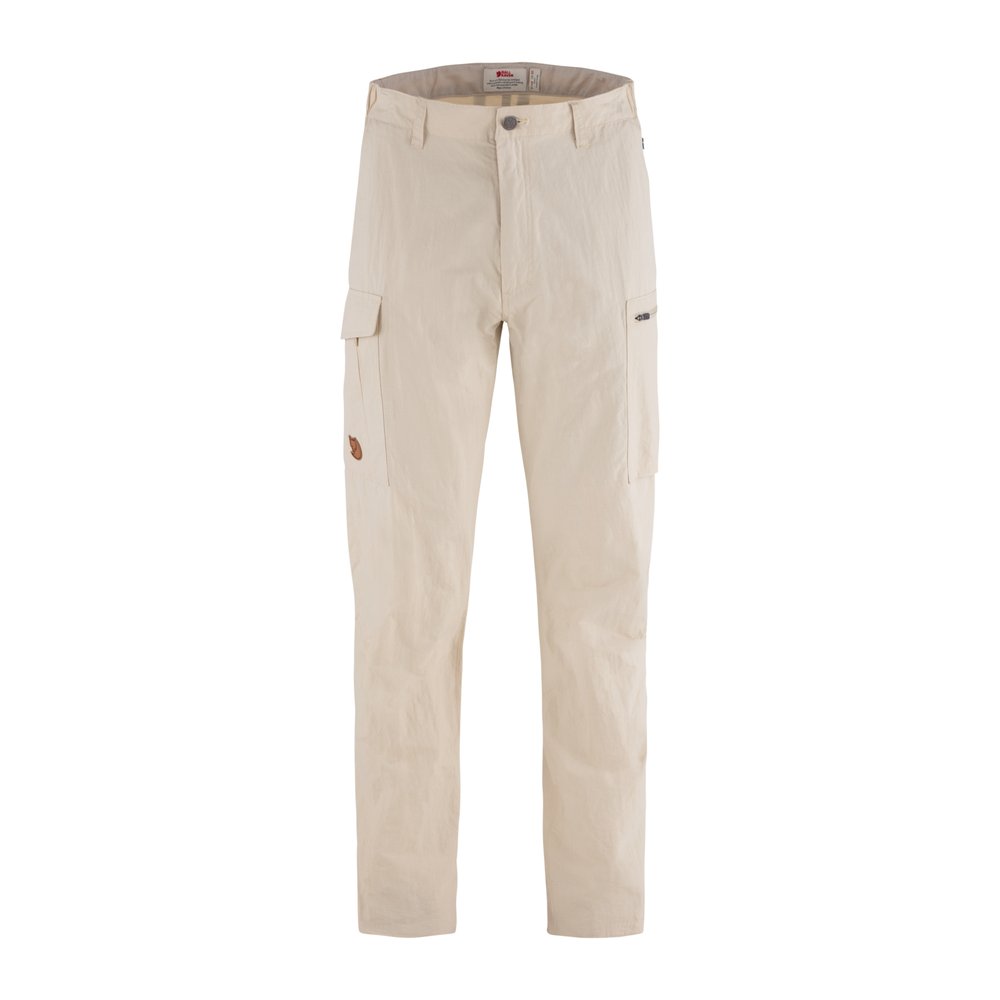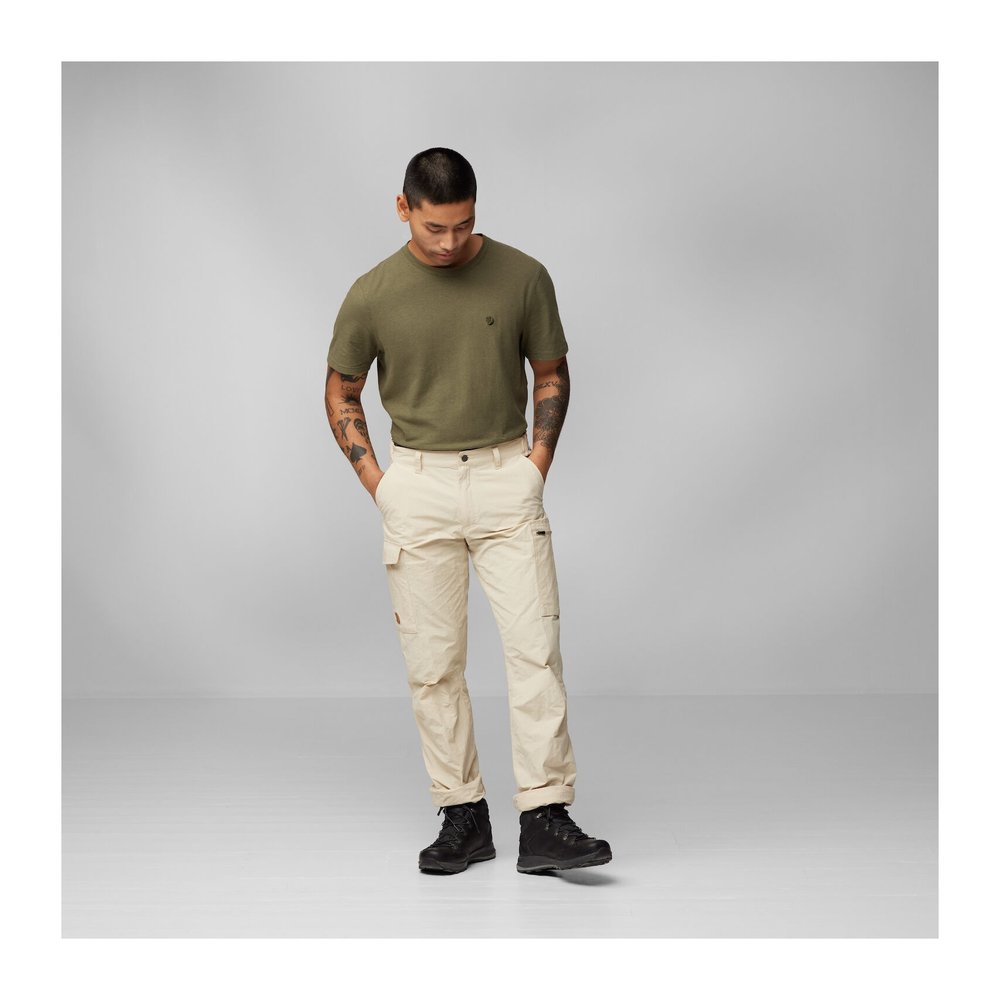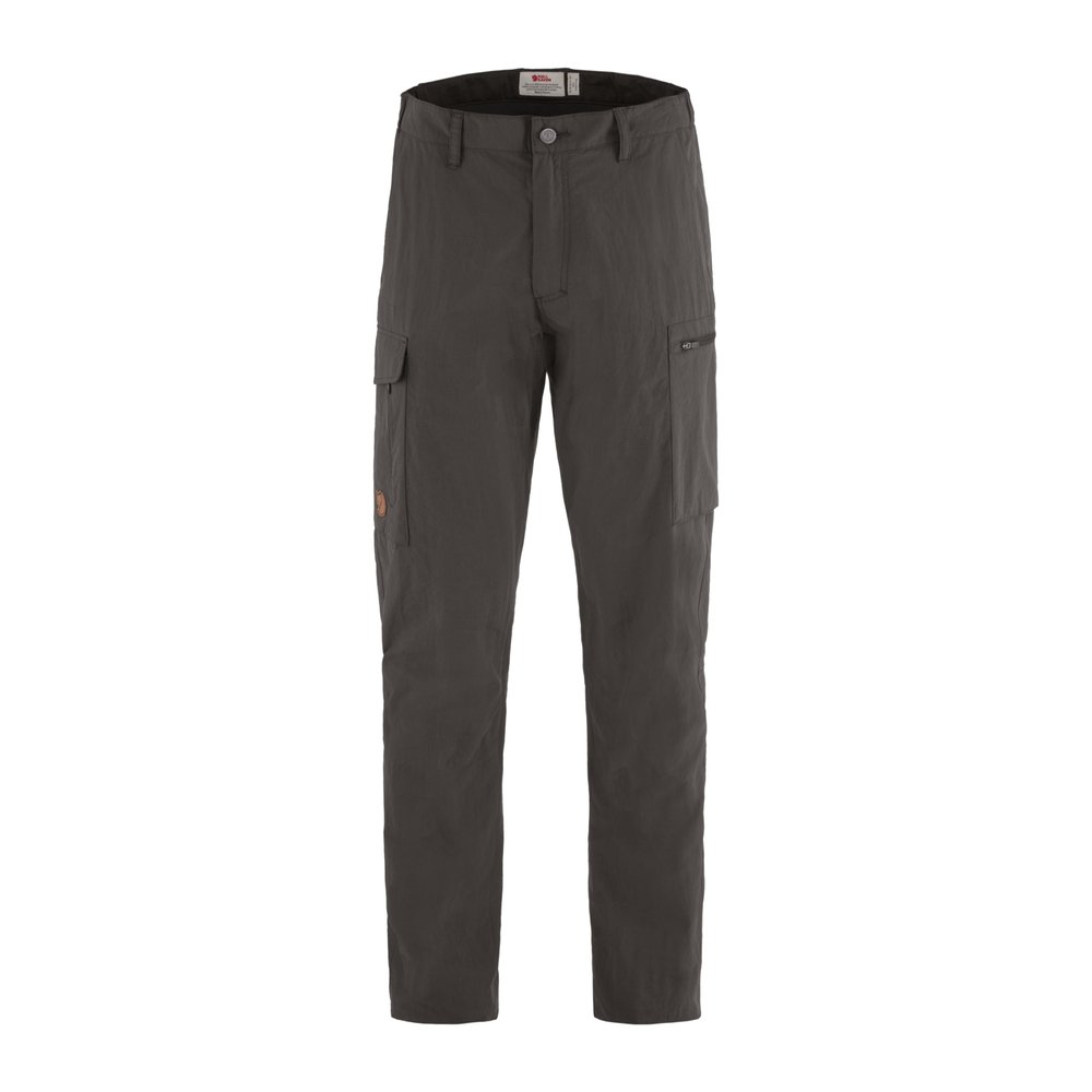 FJÄLLRÄVEN Travellers MT Trousers Men sind leichte und bequeme Allzweckhosen, ideal für Stadt und Wanderungen. Gefertigt aus MT Eco, einem kühlen, schnell trocknenden, knitterfreien und feuchtigkeitsregulierenden Stoff aus recyceltem Polyamid und Bio-Baumwolle. Die Hose besitzt einen elastischen Bund mit Mesh-Futter, eine entspannte Passform mit vorgeformter Kniepartie und schmal zulaufendem Bein. Zahlreiche praktische Taschen, darunter großzügige Beintaschen, sorgen für Stauraum. Die ungekürzten Beinabschlüsse sind einfach anpassbar.