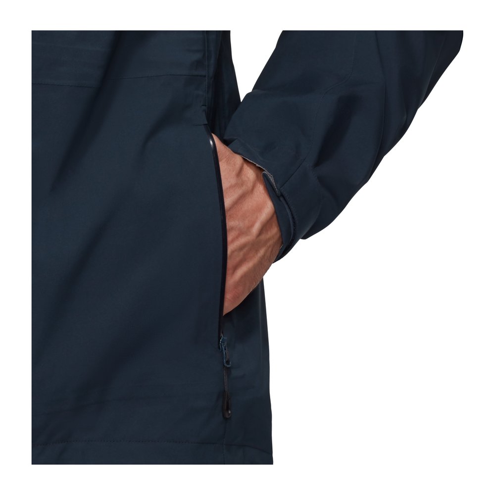 Mammut Linard Guide HS Hooded Jacket Men ist eine leistungsstarke Hardshelljacke, die bei Wind und Wetter zuverlässigen Schutz bietet. Das 3-lagige Mammut DRY Tour Laminat sorgt für Wasserdichtigkeit und hohe Atmungsaktivität, sodass die Performance auch bei anstrengenden Touren nicht eingeschränkt wird. Das Material ist leicht, dehnfähig und zu 100 % aus Polyester gefertigt, wodurch die Jacke nicht nur angenehm zu tragen, sondern auch recyclingfreundlich ist. Mit verstellbarer Kapuze mit verstärktem Schirm, wasserabweisenden Reißverschlüssen, Unterarm-Belüftung und regulierbarem Saum ist sie optimal auf Outdoor-Abenteuer im Regen ausgerichtet.
