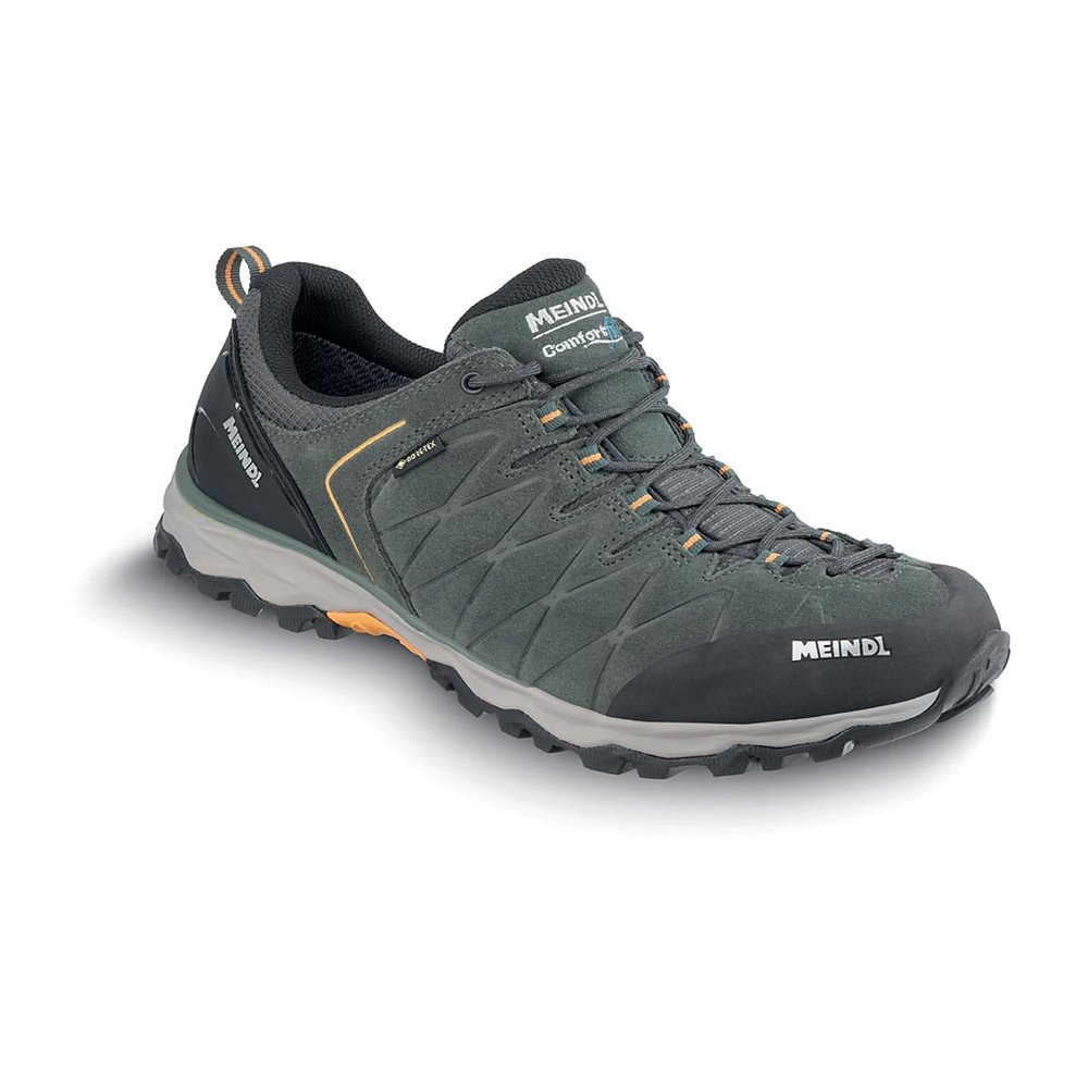 Der MEINDL Mondello GTX Men ist ein robuster und zugleich komfortabler Multifunktionsschuh, der speziell für Herren entwickelt wurde, die Wert auf eine großzügige Passform legen. Die Kombination aus hochwertigem Veloursleder und strapazierfähigem Mesh-Gewebe bietet eine ideale Mischung aus Stabilität und Atmungsaktivität. Dank der integrierten GORE-TEX Membran ist der Schuh absolut wasserdicht und garantiert auch bei nassen Bedingungen ein trockenes Fußklima. Ein zentrales Merkmal ist das Comfort fit®-Konzept: Der extra breite Vorderfußbereich bietet deutlich mehr Platz und Volumen, was den Tragekomfort insbesondere bei längeren Touren spürbar erhöht. Für zusätzlichen Schutz im Gelände sorgen robuste Fersen- und Zehenschutzkappen aus Gummi. Das AIR-ACTIVE® Wellness Sport Fußbett sorgt in Verbindung mit der dämpfenden EVA-Zwischensohle für eine hervorragende Stoßabsorption. Die Meindl Multi Trail Comfort Sohle gewährleistet zudem sicheren Halt und Stabilität auf befestigten Wegen sowie bei sportlichen Freizeitaktivitäten.