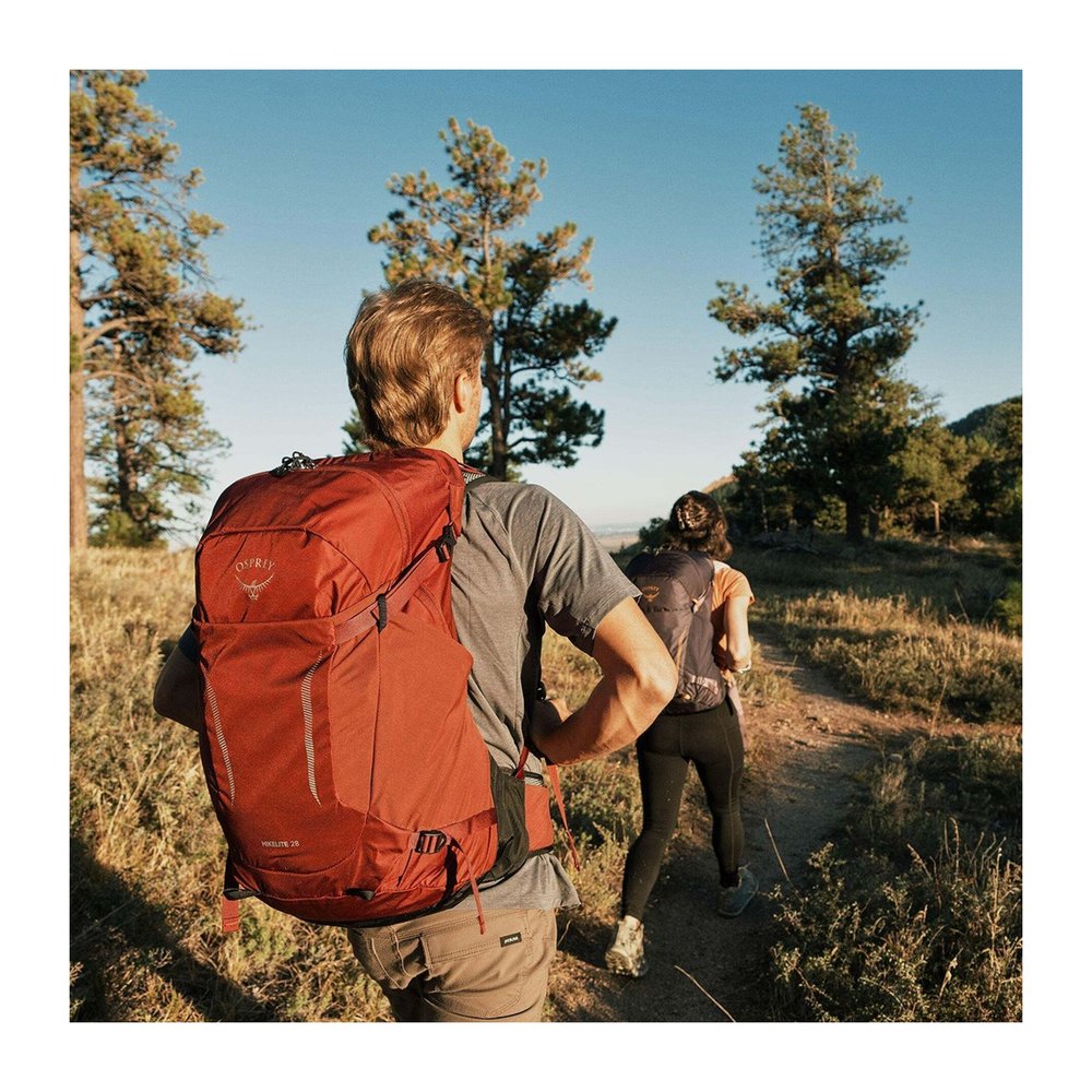 OSPREY Hikelite 28 ist ein leichter, funktionaler Tagesrucksack mit 28 Litern Volumen, der sich auf das Wesentliche konzentriert und dabei durch zusätzliche Tragekapazität und das effiziente AirSpeed™ Rückensystem für beste Belüftung und Komfort sorgt. Das traditionelle Panel-Loader-Design ermöglicht einen praktischen Reißverschlusszugang zum Hauptfach, ergänzt durch eine Fronttasche mit Stretch-Einsätzen und gepolsterte Hüftgurtfächer für Snacks und Kleinigkeiten. Mit externen Kompressionsriemen, Trekkingstockhalterungen und einem im Lieferumfang enthaltenen, nachhaltigen Regenschutz aus bluesign®-zertifizierten, PFAS-freien Materialien ist der Hikelite 28 ein verlässlicher Begleiter für alle Touren.
