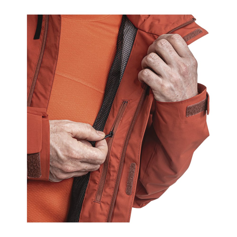 Die SCHÖFFEL Jacket Gmund Men bietet dir auf deinen Wanderungen optimalen Wetterschutz, damit du dich ganz auf die Natur konzentrieren kannst. Das hochwertige 2-Lagen VENTURI® Ripstop Material macht die Jacke nicht nur besonders strapazierfähig, sondern garantiert mit einer Wassersäule von 10.000 mm und komplett getapten Nähten absolute Wasserdichte. Dank der integrierten Performance Membrane ist das Gewebe zudem winddicht und höchst atmungsaktiv (10.000 MVTR), wodurch warme Luft schnell nach außen geleitet wird und ein angenehmes Körperklima ohne Hitzestau entsteht. Ein funktionales Detail ist die verstellbare Kapuze, die bei trockenem Wetter einfach im Kragen verstaut werden kann. Für einen passgenauen Sitz und Schutz vor Elementen lassen sich die Arm- und Saumabschlüsse individuell verstellen. In den zwei Reißverschluss-Außentaschen sowie einer Innentasche findet dein Equipment sicheren Platz. Der Oberstoff besteht im Sinne der Ressourcenschonung auf der Außenseite zu 100 % aus recyceltem Polyester.