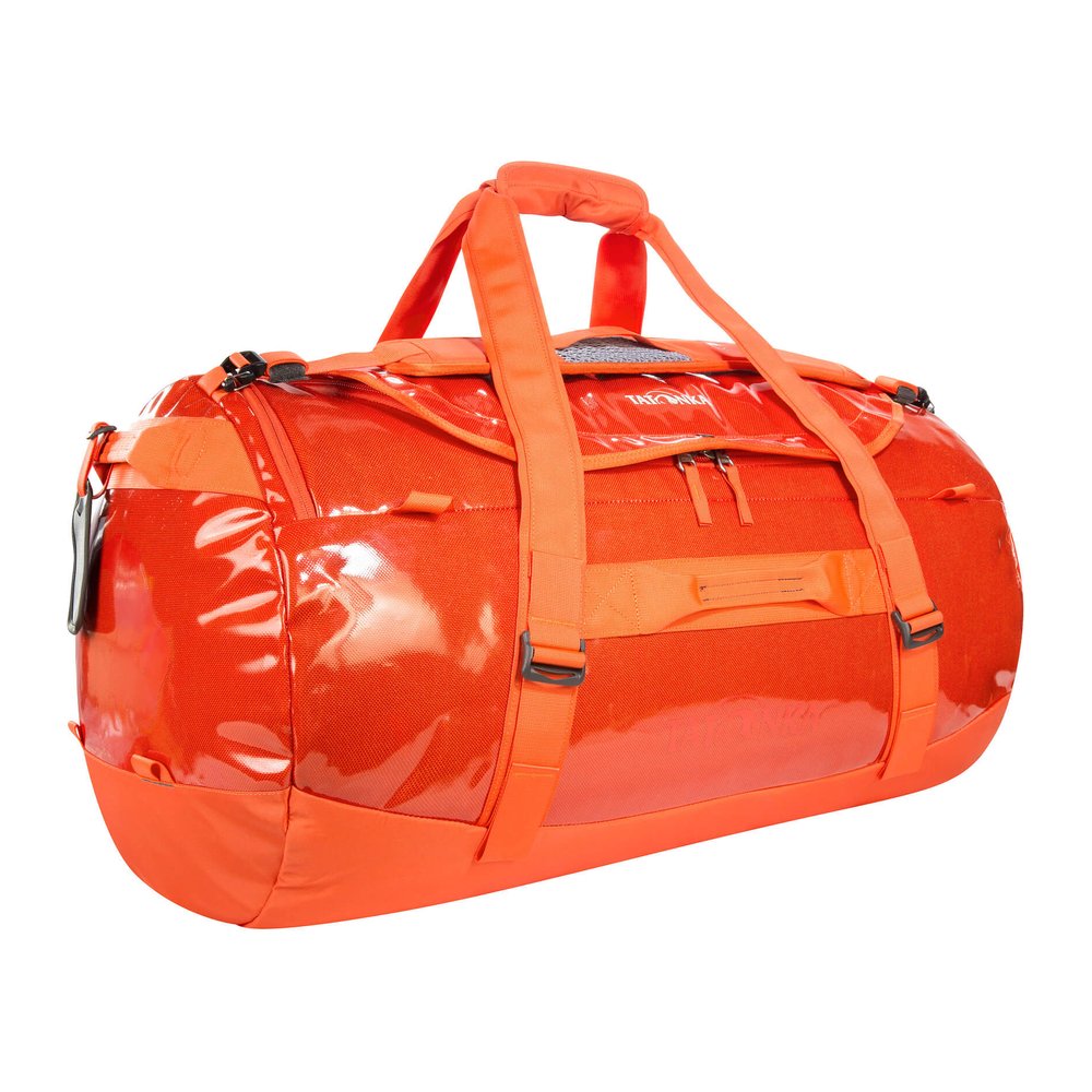 Die Tatonka Barrel 85, ausgestattet mit abnehmbaren Rucksackträgern, bietet mit ihrem Volumen von 85 Litern genügend Platz für das Gepäck einer ein- bis zweiwöchigen Reise. Die Tasche verfügt über breite Tragegriffe und Handgriffe an allen vier Seiten, was das Handling über kurze Strecken, beim Flughafen-Check-in oder beim Verstauen im Auto erleichtert. Hergestellt aus robustem, pflegeleichtem TPU-beschichtetem Nylon, bietet der gepolsterte Boden zusätzlichen Schutz für den Inhalt. Die große Öffnung der Tasche erleichtert das Packen, während kleinere Gegenstände in der flachen Netztasche unter dem Deckel oder in zwei Einsteckfächern Platz finden. Eine voluminöse Reißverschlusstasche an der Außenseite bietet weiteren Stauraum. Bei Bedarf lässt sich das Volumen der Barrel 85 durch die außenliegenden Kompressionsriemen reduzieren.