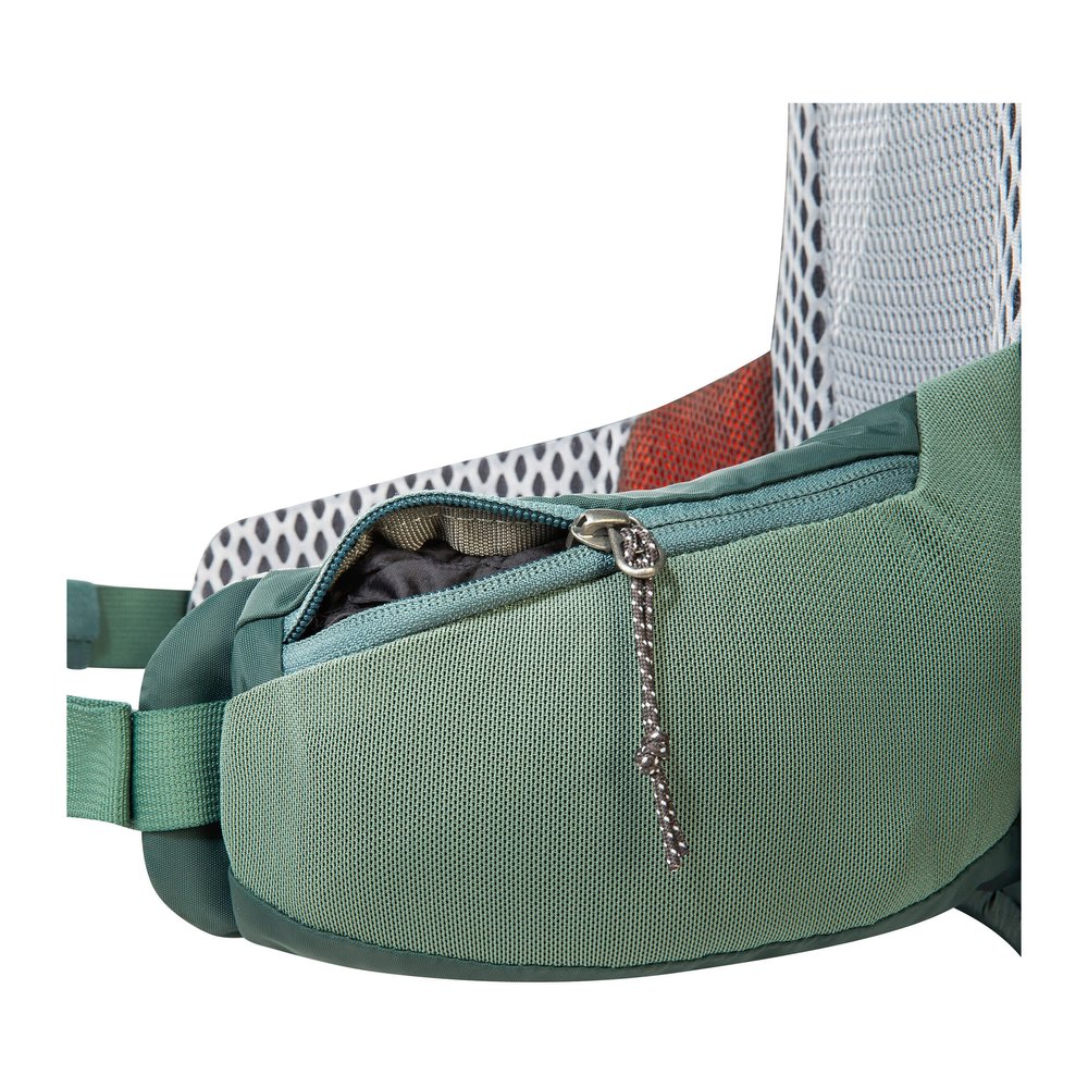 • Hüftgurt mit Reißverschlusstasche auf einer Hüftflosse