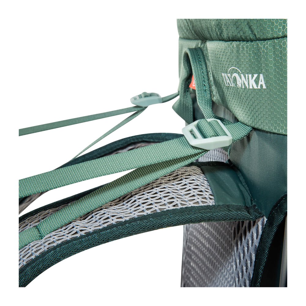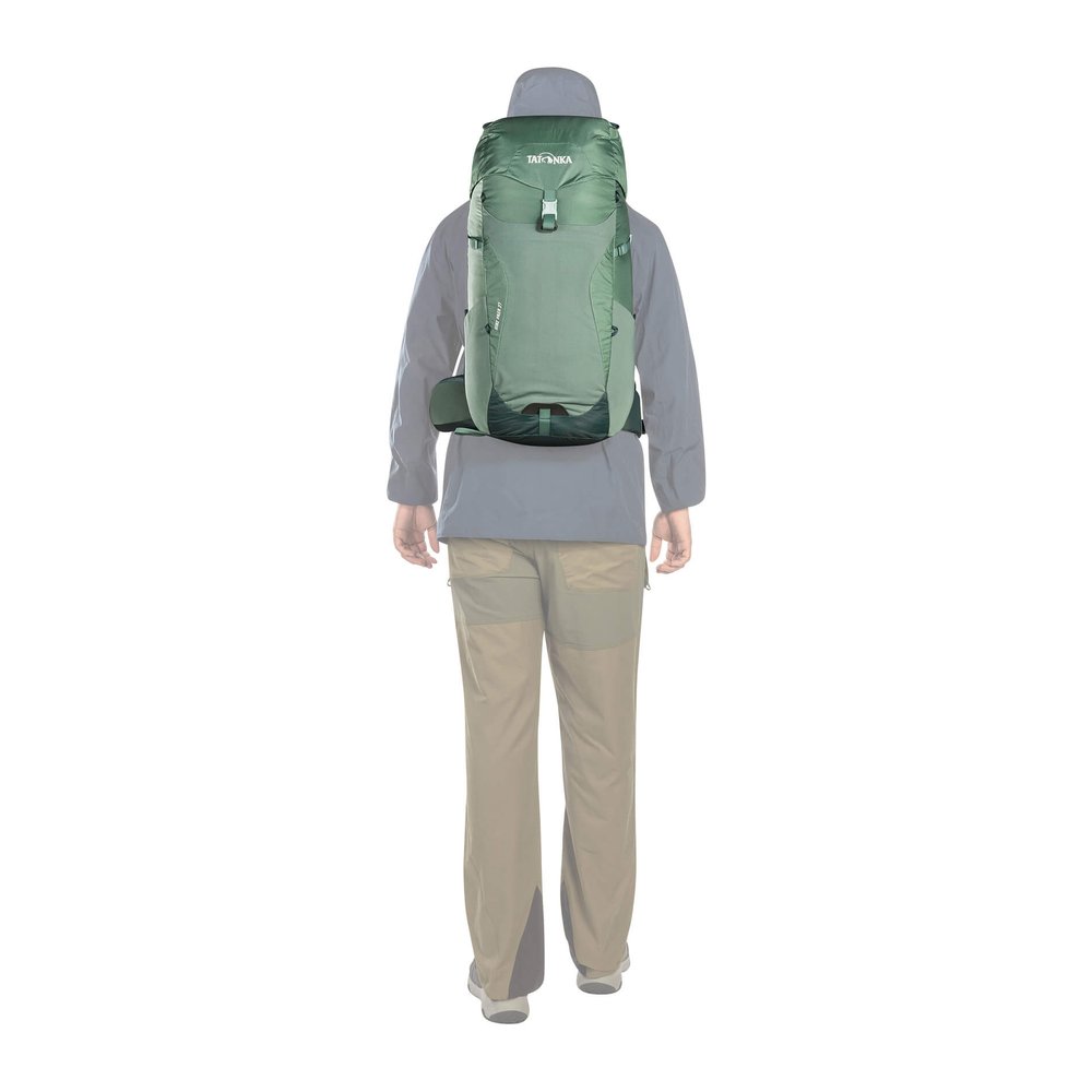 Der Tatonka Hike Pack 27 Wanderrucksack, mit einem Volumen von 27 Litern, ist ideal für Zwei- oder Dreitageswanderungen oder als Familienrucksack geeignet. Das Frame Vent-Rückensystem passt sich angenehm dem Rücken an und das Abstandsnetz gewährleistet eine optimale Belüftung. Eine zusätzliche Einstellung des Systems ist nicht nötig, da es sich flexibel jeder Bewegung anpasst. Der Rucksack wird mit einem Hüft- und Brustgurt sicher am Rücken fixiert. Ausrüstung kann im Hauptfach, Deckelfach, in der Fronttasche sowie in zwei Seitentaschen verstaut werden. Wanderstöcke lassen sich in der speziell dafür vorgesehenen Halterung befestigen. Im Hauptfach gibt es zudem ein Fach für eine Trinkblase und einen Schlauchdurchlass. Eine Regenhülle rundet die Ausstattung ab. Zudem ist der Rucksack PFAS-frei.