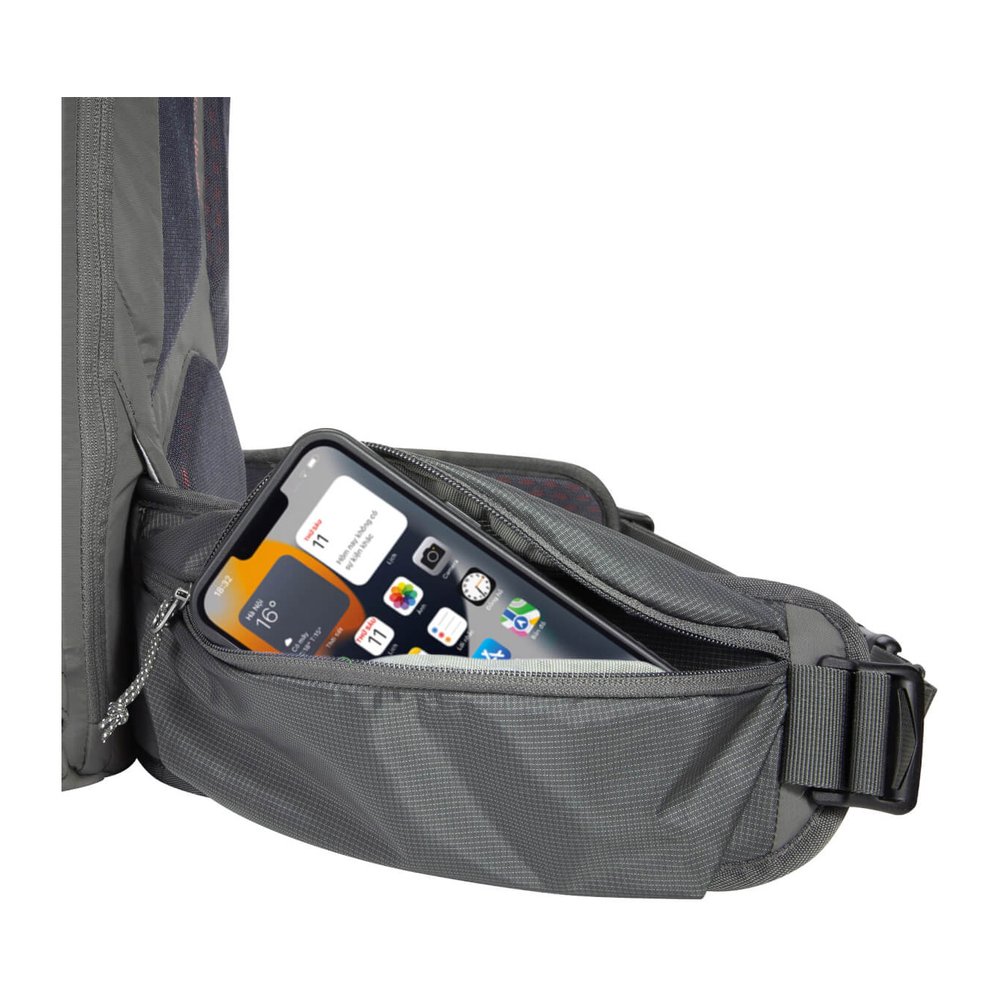 Gefertigt aus leichtem und robustem 210 HD Nylon FD ist der Rucksack auf intensive Nutzung ausgelegt. Der gepolsterte Hüftgurt lässt sich bei Bedarf abnehmen, wodurch du den Rucksack flexibel an unterschiedliche Touren anpassen kannst.