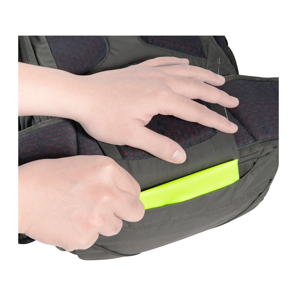 Das Vent Comfort-Tragesystem sorgt für einen körpernahen Sitz und ermöglicht eine präzise Kontrolle der Last, besonders in schwierigem Terrain. Gleichzeitig unterstützt der integrierte Belüftungskanal zusammen mit dem atmungsaktiven AirMesh-Bezug eine angenehme Luftzirkulation am Rücken.