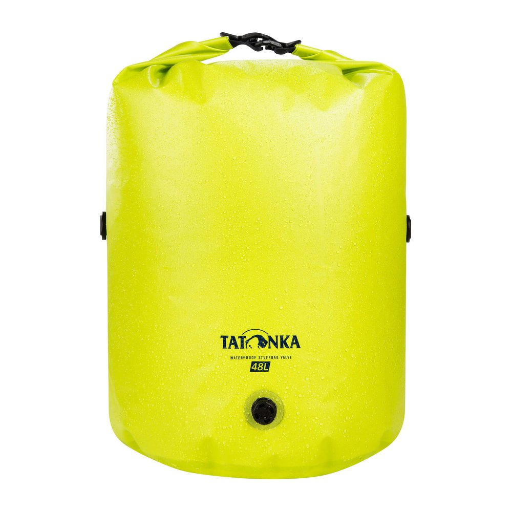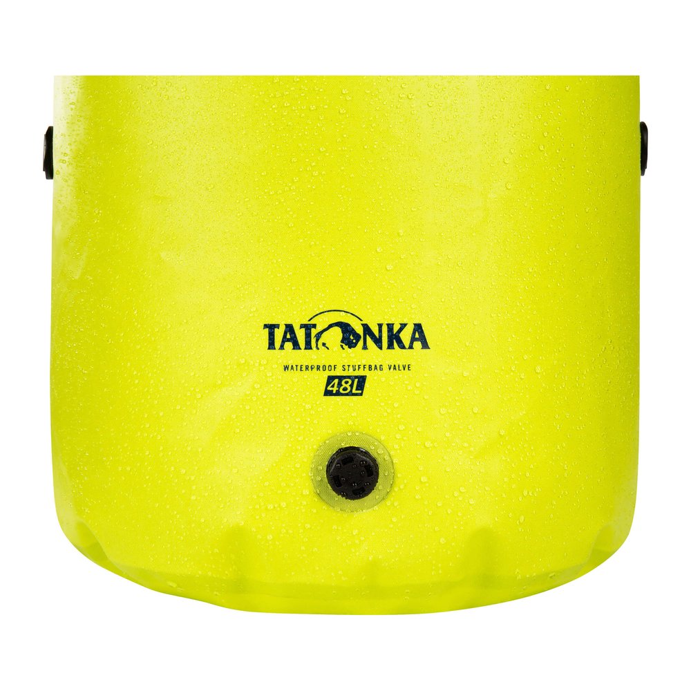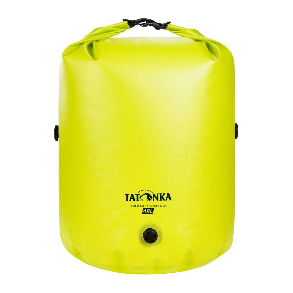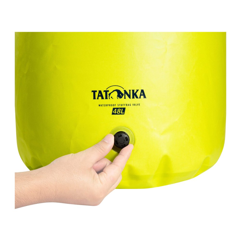 Der Tatonka WP Stuffbag Valve mit einem Volumen von 48 Litern ist ein widerstandsfähiger Packsack aus wasserdichtem, TPU-beschichtetem Gewebe mit hochfrequenzgeschweißten Nähten und Rollverschluss. Ein integriertes Ventil hilft, überschüssige Luft zu entfernen, wenn der Packsack komprimiert werden soll. Aufgeschweißte Lasercut-Elemente mit Schlitzen und durchgezogenen D-Ringen an beiden Seiten erlauben das Anbringen von Tragegurten und die Befestigung, beispielsweise im Boot, auf dem Motorrad oder Fahrrad. Das verwendete Material ist frei von PVC und mit einer PFC/PFAS-freien Imprägnierung versehen.