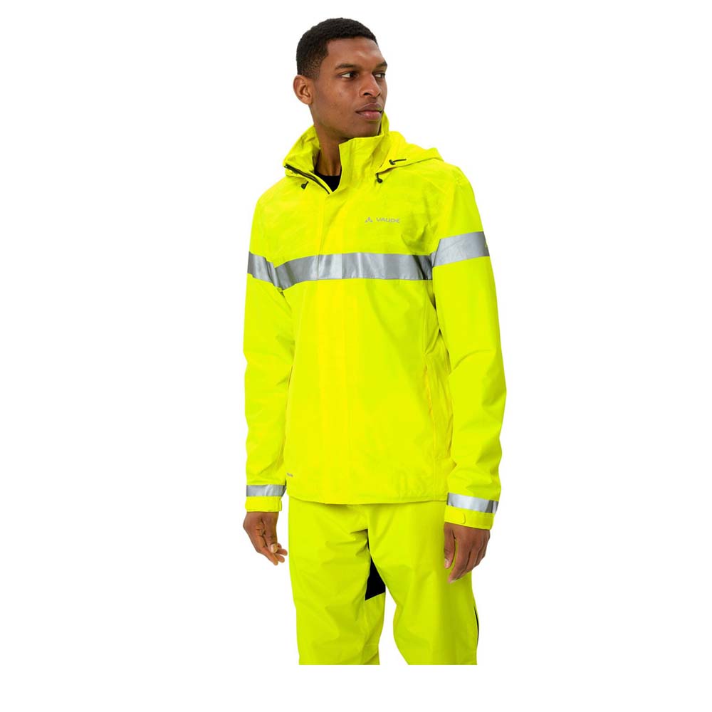 Die VAUDE Luminum Rain Jacket Men ist dein ultimativer Begleiter für graue Regentage und Pendelstrecken, bei denen Sichtbarkeit und Wetterschutz an erster Stelle stehen. Bei dieser Regenjacke sorgt das 2-Lagen-Material mit Ceplex Active Membran für eine dauerhafte Wind- und Wasserdichtigkeit, während sie gleichzeitig eine gute Atmungsaktivität bietet, damit du auch bei aktiver Fahrweise nicht ins Schwitzen gerätst. Ein wesentliches Konstruktionsmerkmal sind die großflächigen 360° Reflex-Elemente, die deine Sichtbarkeit bei schwierigen Lichtverhältnissen massiv erhöhen, wobei die umweltfreundliche Eco Finish Imprägnierung Wasser und Schmutz einfach von der Oberfläche abperlen lässt. Für den nötigen Komfort bei ungemütlichem Wetter verfügt das Modell über eine angeschnittene, weitenregulierbare Kapuze, die sich im Kragen verstauen lässt, sowie einen geteilten Futterstoff aus Mesh und Taffeta für ein angenehmes Tragegefühl. Abgerundet wird das funktionale Design durch regulierbare Ärmelbündchen und einen Kordelzug im Saum, mit denen du die Jacke perfekt an deine Bedürfnisse anpassen kannst, während die vorgeformten Ärmel für eine natürliche Passform in jeder Position sorgen.