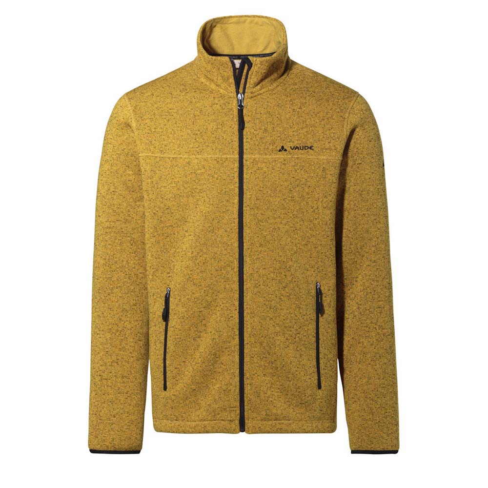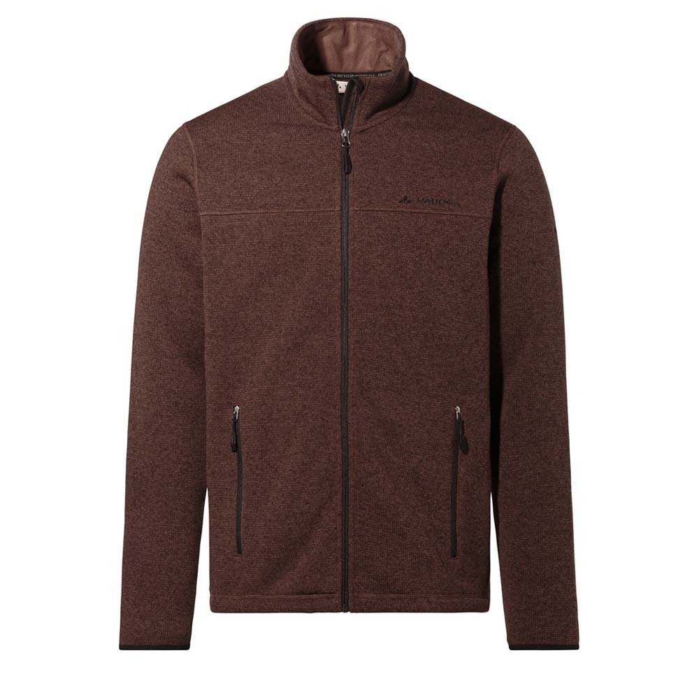 Die VAUDE Rienza Jacket III Men Fleecejacke für Herren in modischer Strickoptik ist der ideale Begleiter, wenn die Temperaturen wieder in den Keller gehen. Das umweltfreundliche Fleece-Material, das zu 100 % aus recycelten PET-Flaschen hergestellt wurde, hält auch bei schweißtreibenden Aktivitäten warm und trocken. Dabei fühlt sich das Fleece angenehm an und ist sehr strapazierfähig. Die Fleecejacke für Herren engt nicht ein und kann als wärmende Schicht unter der Regen- oder Winterjacke getragen werden, reicht bei einer Wanderung im Herbst aber auch allein aus. Die flachen Nähte im Schulterbereich der Rienza Jacket III sorgen für einen hohen Tragekomfort, auch wenn ein Rucksack auf den Schultern sitzt. In den beiden seitlichen Reißverschlusstaschen der Herren Fleecejacke werden kalte Hände wieder warm, bieten aber auch Platz für Kleinigkeiten. Der Kordelzug im Saum ist durch die Taschen regulierbar, elastische Ärmelbündchen sorgen für optimalen Sitz. Das VAUDE Green Shape-Label steht für ein umweltfreundliches, funktionelles Produkt aus nachhaltigen und bluesign® zertifizierten Materialien. Als Mitglied mit Leader Status bei der unabhängigen Organisation Fair Wear engagiert sich VAUDE für faire Arbeitsbedingungen und faire Löhne.