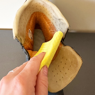 Entferne die Schnürsenkel, damit du beim Reinigen überall gut hinkommst und keine Stellen verdeckt bleiben.