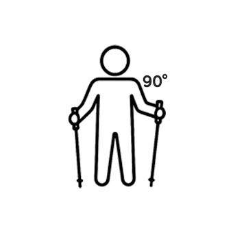 - Stocklänge so einstellen, dass der Ellenbogen etwa im 90 Grad Winkel gebeugt ist