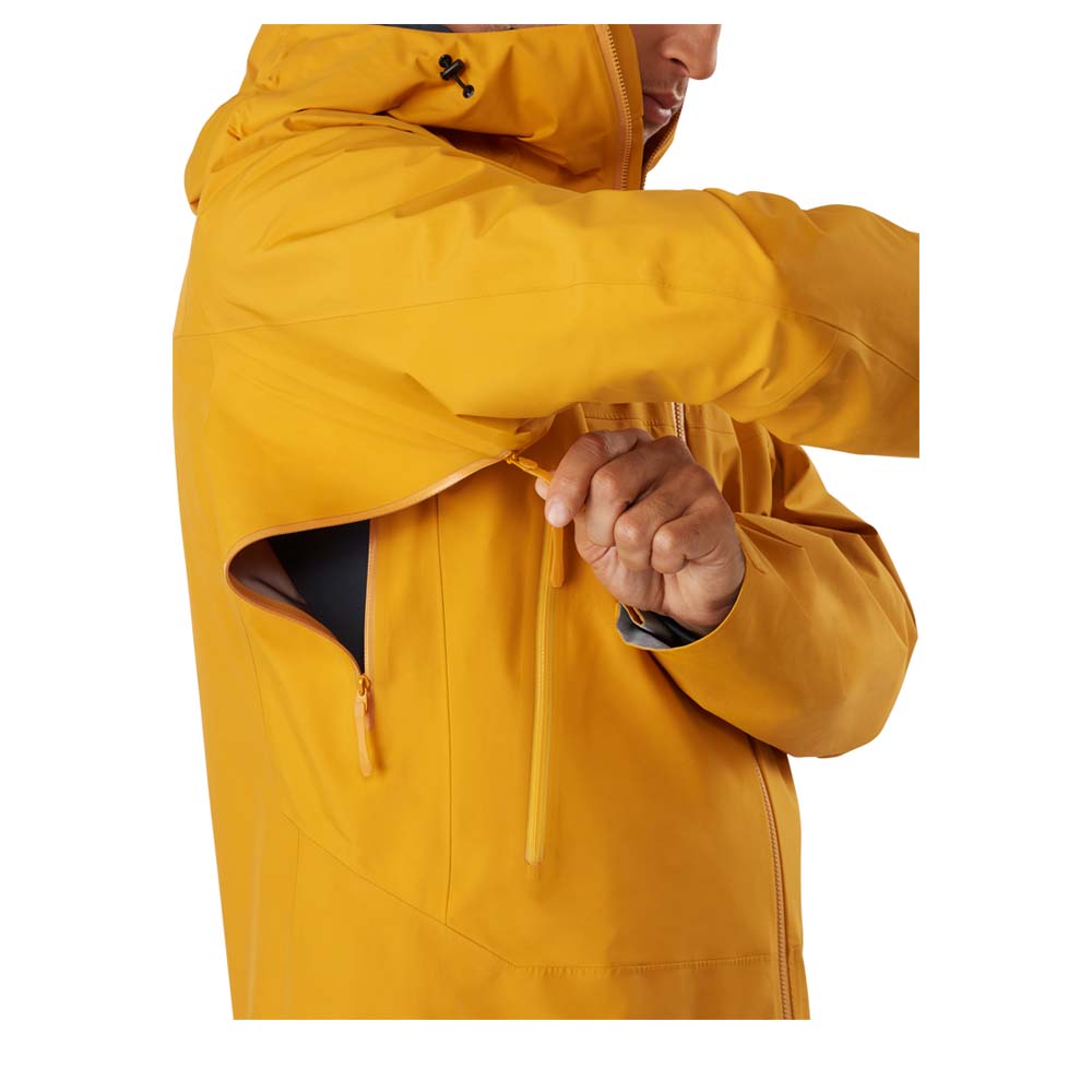 Die Arc'teryx Beta SL Hybrid Jacke ist das Ergebnis aus der Kombination von zwei wasserdichten GORE-TEX Materialien. Nämlich eine superleichte, vielseitig einsetzbare und klein verstaubare Regenjacke, welche ganz im Sinn der Beta Serie von Arc'teryx optimalen Wetterschutz gewährt. Die Beta SL Hybrid wurde unter gewichtsreduzierenden strategischen Gesichtspunkten aus zwei verschiedenen wasserdichten GORE-TEX Materialien hergestellt, um maximale Funktionalität bei minimalem Gewicht zu erreichen. Bei Aktivitäten besonders belastete Bereiche sind verstärkt durch das besonders robuste GORE-TEX GORE C-KNIT™ Material. An nicht ganz so beanspruchten Stellen der Jacke sorgt das N40r Material von GORE-TEX für ein angenehmes Tragegefühl auf der Haut. Ebenfalls verfügt die Jacke über eine helmkompatible StormHood™-Kapuze, welche Schutz bietet aber dennoch Ihr Sichtfeld nicht einschränkt. Für angenehme Belüftung befinden sich zusätzlich Unterarm-Reißverschlüsse an der Beta SL Hybrid. Das Neudesign der Jacke trumpft durch ein verbessertes Rumpfmaterial, büßt bei ihrem Gewicht von 360 g dennoch nicht an Gewicht ein.