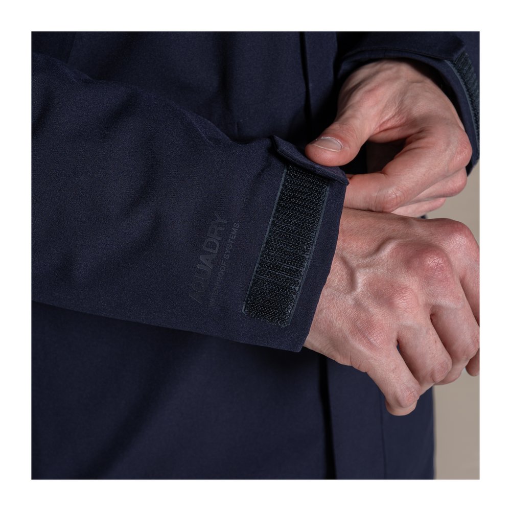 • Pflegehinweise: Waschbar bei 30 °C, Schonschleudern, Maschinenwäsche mit AquaDry-Reinigungsmittel oder reiner Seife, keine Bleichmittel, keine Weichspüler, nicht chemisch reinigen, bei niedriger Temperatur trocknergeeignet, Bügeln bei geringer Temperatur auf der Außenseite, alle Verschlüsse vor dem Waschen schließen, AquaDry-Imprägniermittel bei Bedarf auftragen
