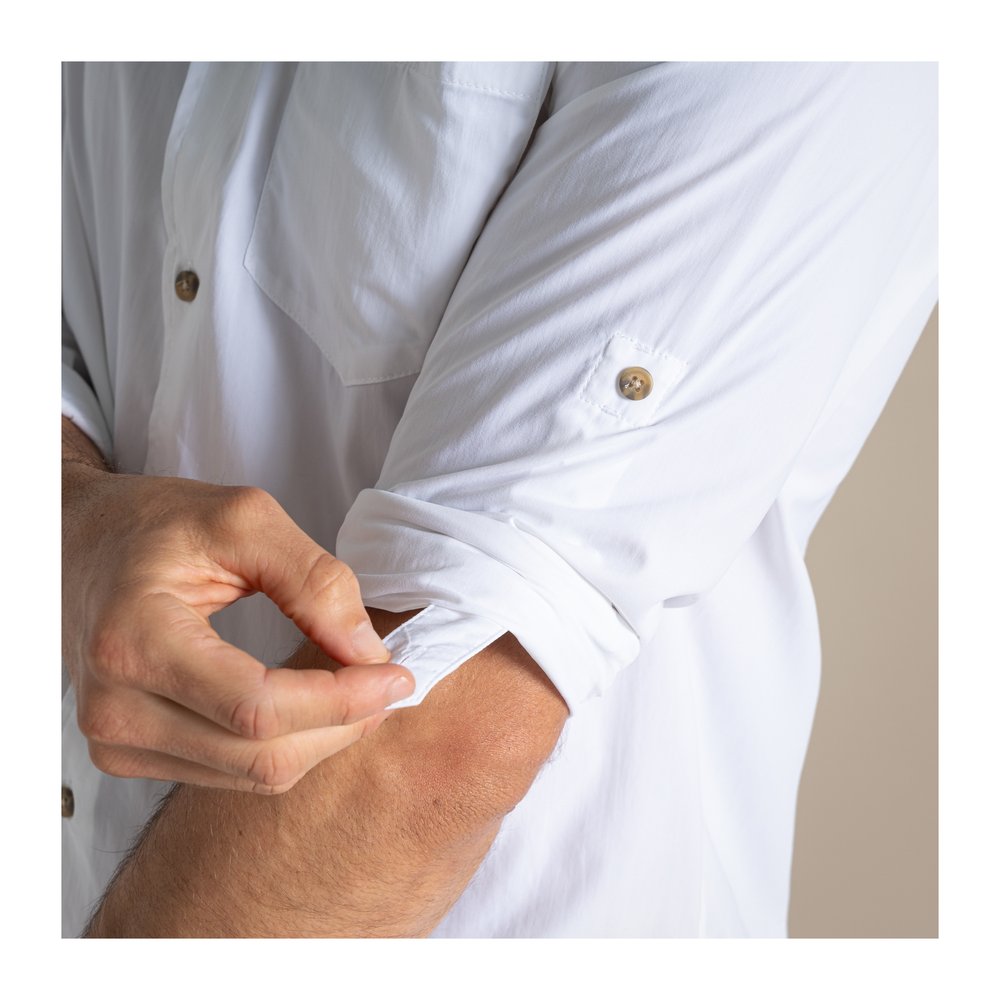 CRAGHOPPERS NosiLife Nuoro Long Sleeved Shirt II Men von Craghoppers ist ein leichtes Reisehemd mit funktionalem Design für vielseitige Abenteuer. Das Gewebe ist mit der NosiLife-Technologie ausgestattet, die wirksamen Insektenschutz sowie geruchshemmende Eigenschaften bietet. Zusätzlich ist es feuchtigkeitsregulierend, schnelltrocknend und sorgt auch bei hohen Temperaturen für ein angenehm frisches Tragegefühl. Praktische Features wie aufrollbare Ärmel, ein Kragen mit kühlender Mesh-Innenseite und integrierte Drying Loops runden die Funktionalität ab.