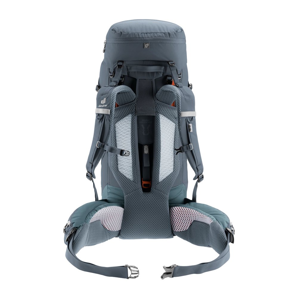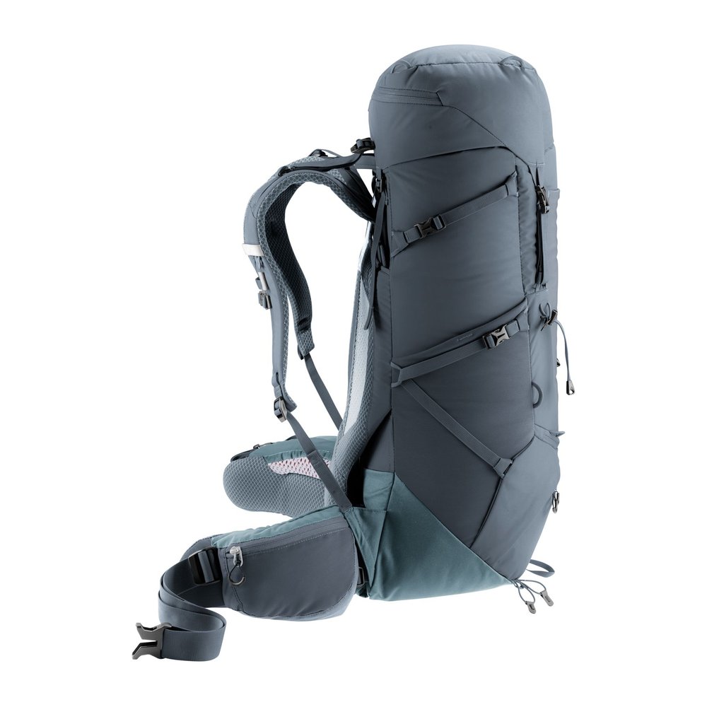 Der DEUTER Aircontact Core 40+10 ist ein komfortabler Trekkingrucksack, der für anspruchsvolle Wanderungen hohe Vielseitigkeit und optimale Lastverteilung bietet. Mit abnehmbaren Kompressionsriemen lassen sich unterschiedliche Ausrüstungsgegenstände flexibel befestigen. Das Aircontact-Rückensystem mit Air Spacer Mesh und Belüftungskanal sorgt zusammen mit ergonomischen Active Fit Schulterträgern, Pull-Forward-Hüftflossen und dem stabilen Aluminium-Y-Rahmen für hohen Tragekomfort und effiziente Lastübertragung. Durchdachte Organisationseinheiten wie Stretch-Innenfach, elastische Seitentaschen, aufklappbarer Zwischenboden und Deckeltasche unterstützen die Übersicht und schnelle Zugänglichkeit der Ausrüstung. Hergestellt aus robustem, langlebigem Material, kombiniert der Rucksack Komfort, Stabilität und Funktionalität.