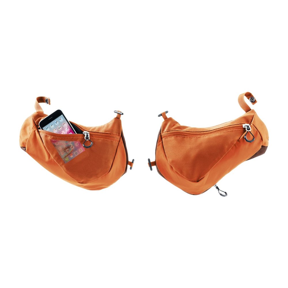 - Zwei abnehmbare Hüftflossentaschen (3 L)