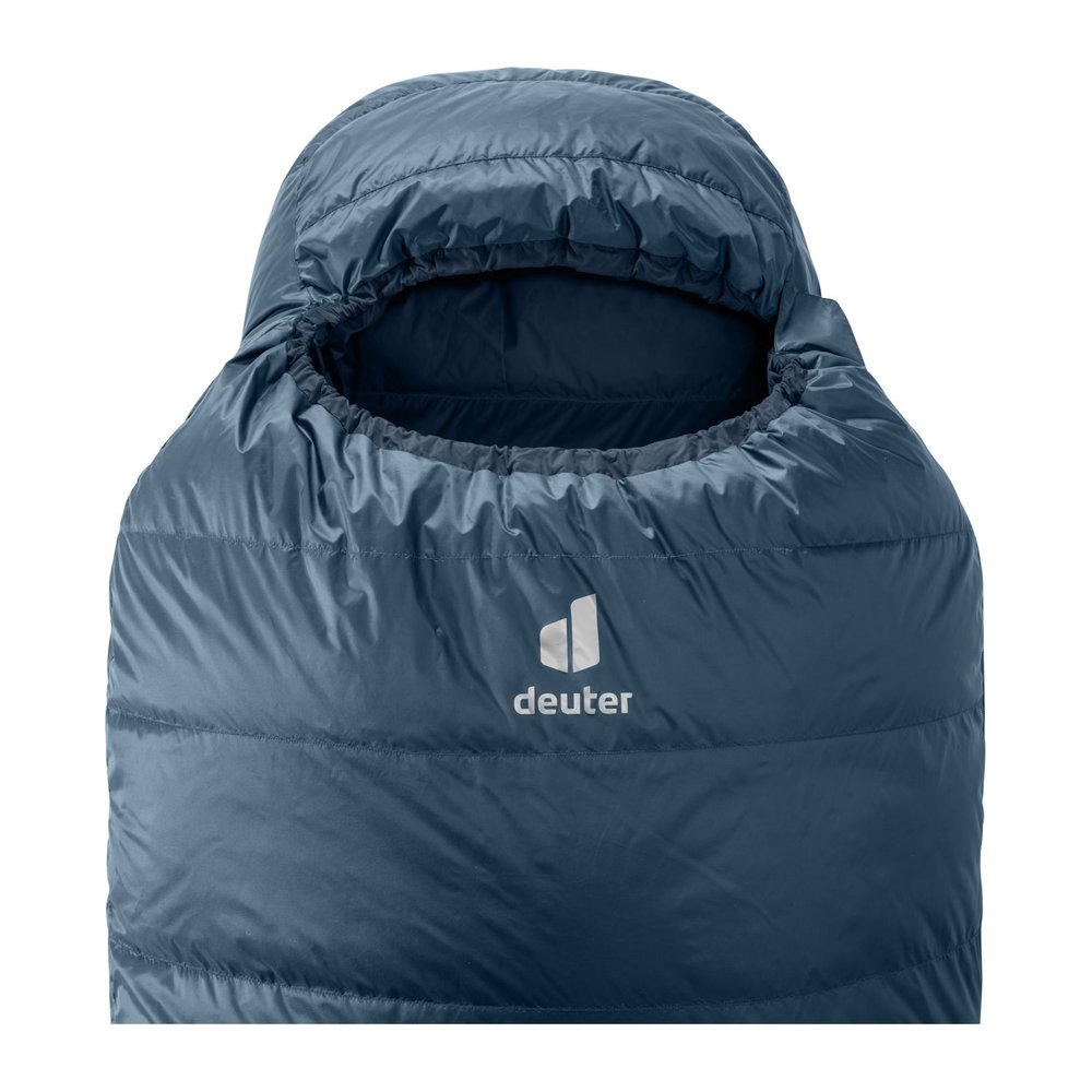 DEUTER Astro 500 -2C/28F - Daunenschlafsack von Deuter bietet höchsten Komfort für kühle Nächte. Durch die RDS-zertifizierte Daune und die H-Kammerkonstruktion kann sich die Füllung optimal aufbauschen, was eine hervorragende Wärmeisolierung ermöglicht. Der Schlafsack überzeugt durch 360°-Isolation, wasserabweisendes Außenmaterial und den Mumien-Komfortschnitt, der eine ergonomische Passform garantiert. Dank der ThermoHood-Konturkapuze, ErgoFoot-Konstruktion und des Wärmekragens wird die Wärme effizient gespeichert. Das Produkt ist bluesign®-zertifiziert und mit dem Grünen Knopf ausgezeichnet, was eine nachhaltige Produktion bei minimalen Umweltauswirkungen garantiert.