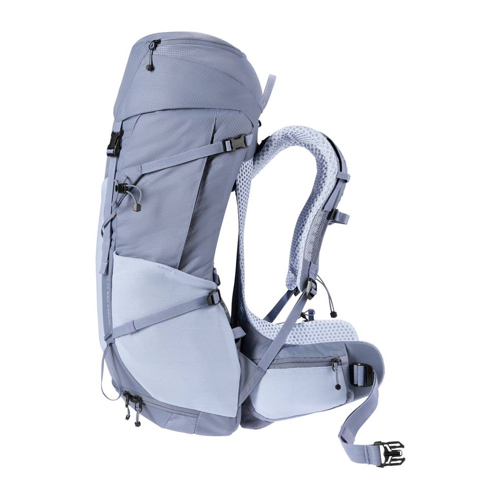 Der DEUTER Futura Pro 34 SL ist der ultimative Hochleistungs-Wanderrucksack für Damen, die auf längeren Touren keine Kompromisse bei Komfort und Lastenverteilung eingehen wollen. Speziell auf die weibliche Anatomie abgestimmt, bietet dieser Rucksack von DEUTER einen hervorragenden frauenspezifischen Fit. Das innovative Aircomfort-Rückensystem sorgt durch sein weiches Netzmaterial für maximale Belüftung, während die VariClick-Technologie eine präzise Anpassung der Rückenlänge ermöglicht. Die direkt am dauerhaft elastischen Federstahlrahmen befestigten ActiveFit-Schulterträger optimieren die Lastübertragung spürbar. Für eine erstklassige Organisation deiner Ausrüstung verfügt der Rucksack über ein separates Bodenfach mit aufklappbarem Zwischenboden sowie geräumige gepolsterte Hüftflossen, die das Gewicht gleichmäßig verteilen. Ein besonderes Highlight für Technik-Fans ist die Schnellbefestigung für Stöcke direkt am Schulterträger. Im Sinne der Ökodesign-Verordnung (ESPR) glänzt das Modell durch Nachhaltigkeit: Er ist ein bluesign® Produkt, ClimatePartner zertifiziert und wird aus recyceltem Hauptmaterial (210D REC PA X-GRID) sowie vollständig ohne PFAS gefertigt. Die integrierte Regenhülle und die Trinksystem-Kompatibilität machen dich bereit für jedes Wetter und jedes Gelände.
