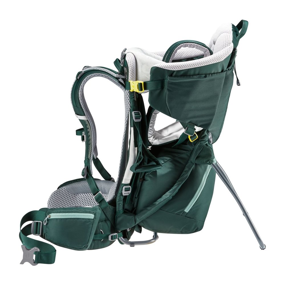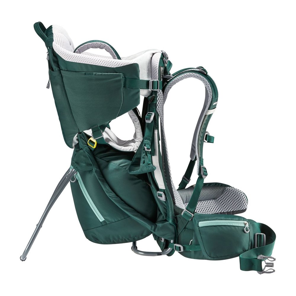 DEUTER Kid Comfort ist eine innovative Kindertrage, die speziell für Familien entwickelt wurde, die gerne gemeinsam die Berge erkunden. Das Aircomfort Sensic Vario Netzrücken System sorgt für eine optimale Lastverteilung und voll belüfteten Rücken, während das große, weiche Kissen den Kopf des Kindes sanft stützt und entspanntes Schlafen ermöglicht. Mit seitlichem Einstieg und gut erreichbarem Gurtsystem bietet die Trage maximale Sicherheit, zertifiziert durch das TÜV GS Siegel. Praktische Features wie VariSlide-Rückenlängenanpassung, aufklappbarer Zwischenboden, höhenverstellbare Fußstützen, herausnehmbares Sonnendach und Vorrichtung für Trinkblase runden das durchdachte Design ab und machen längere Touren komfortabel für Kinder und Eltern.