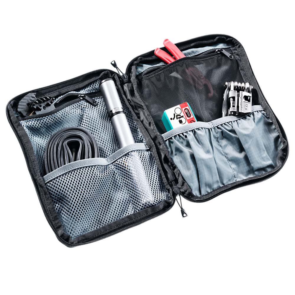 Die Fahrradtasche Tool Pocket von Deuter behält bei einer Fahrradpanne dein Werkzeug bereit.