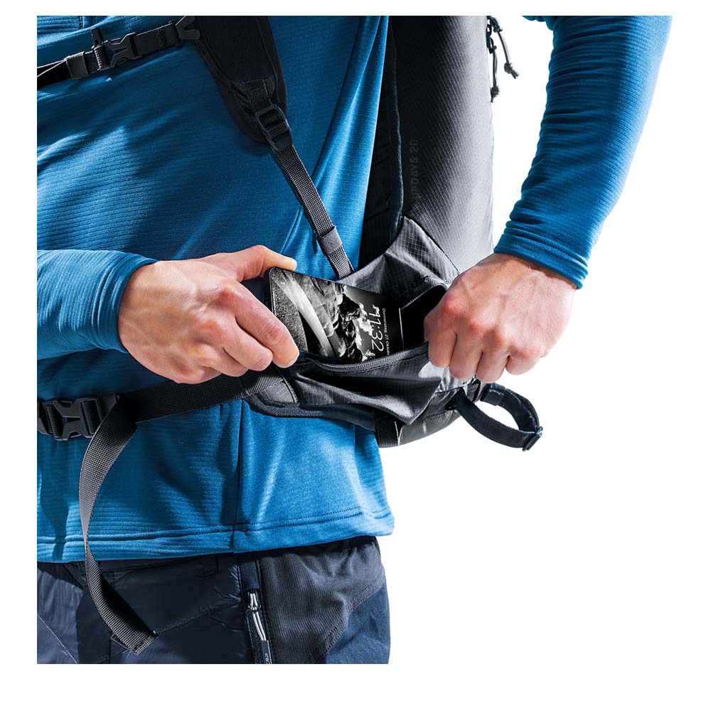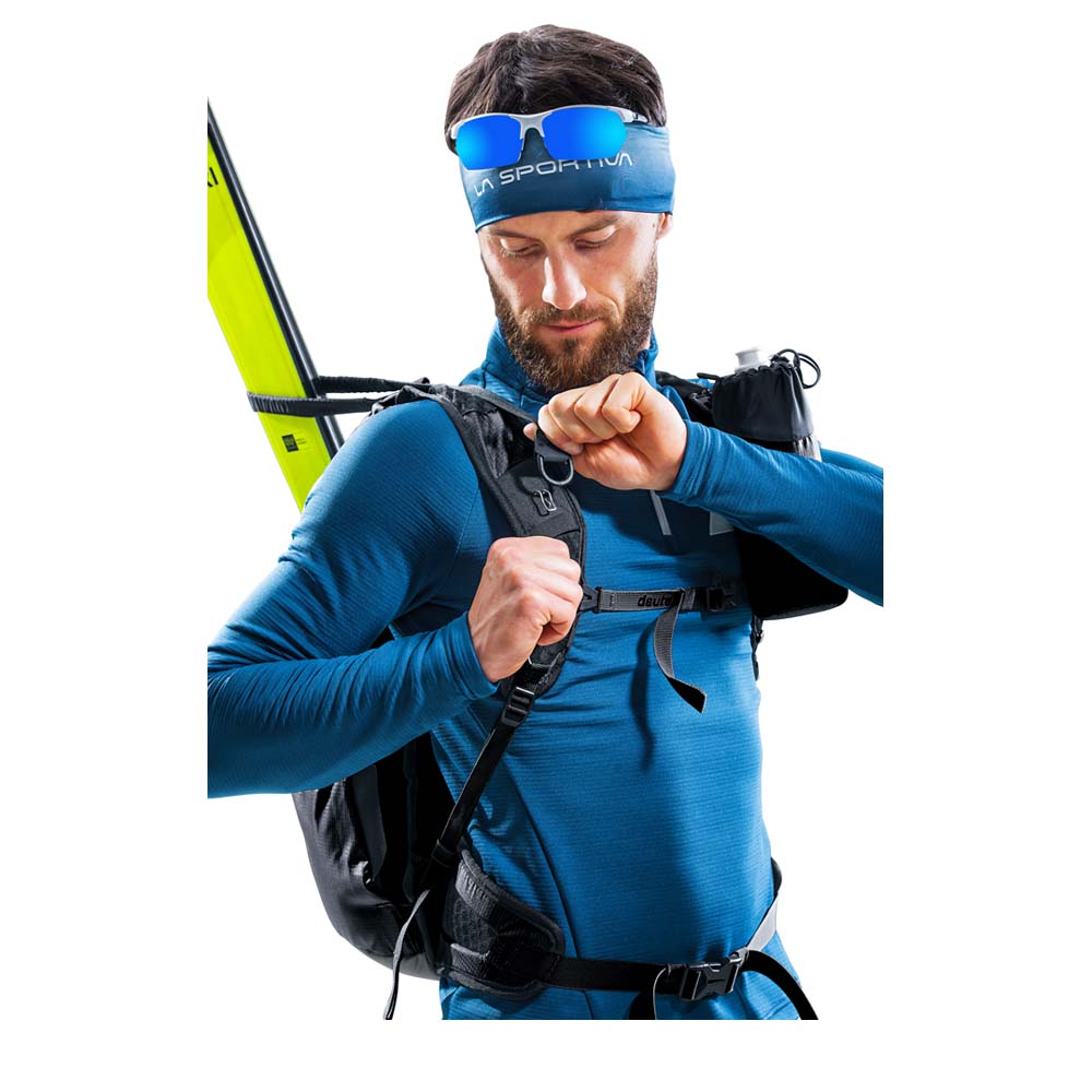 710 gr. Leichtgewicht mit Lite Komfort für Speed Skitouren der Updays 26 von Deuter: gut belüftetet, ergonomische Hüftflossen und Schulterträger mit abnehmbarem Brustgurt und ein weiches, herausnehmbares Rückenmaterial sorgen für festen, körpernahen Sitz bergauf und bergab. Die verstellbare, abnehmbare diagonale Ski-Schnellfixierung mit unterer Schlaufe für Skienden, elastischem Fixierungsband oben und schneller Fixierung über den Haken am Schulterträger ermöglicht schnelles Handling. Ein leicht zugängliches Bodenfach organisiert Felle, Harsch- oder Steigeisen und ist ohne das Absetzen des klimaneutralen Rucksacks erreichbar.