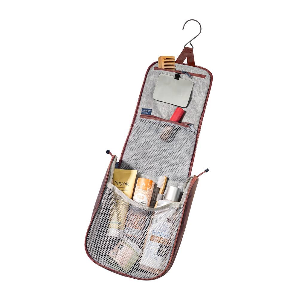 Der DEUTER Wash Center I ist das perfekte Organisationstalent für deine Reisen und sorgt dafür, dass deine Hygieneartikel immer griffbereit und ordentlich verstaut sind. Dank des umlaufenden Reißverschlusses lässt sich der Kulturbeutel weit öffnen und bietet schnellen Zugriff auf das geräumige Hauptfach mit zusätzlichen Netzsteckfächern. Für maximale Flexibilität im Badezimmer oder unterwegs sorgt der verstaubare Haken zum Aufhängen sowie der abnehmbare Spiegel. Kleinere Utensilien und Zahnbürsten finden in den praktischen Elastikschlaufen oder den zwei Reißverschlusstaschen (davon eine aus Netzmaterial) ihren festen Platz. Im Sinne der Ökodesign-Verordnung (ESPR) setzt dieses Modell auf Nachhaltigkeit: Das Hauptmaterial besteht aus recyceltem Polyamid (420D PA RECYCLED). Zudem ist der Kulturbeutel vollständig ohne PFAS hergestellt, wobei eine umweltverträgliche DWR-Imprägnierung zuverlässig vor Feuchtigkeit schützt.