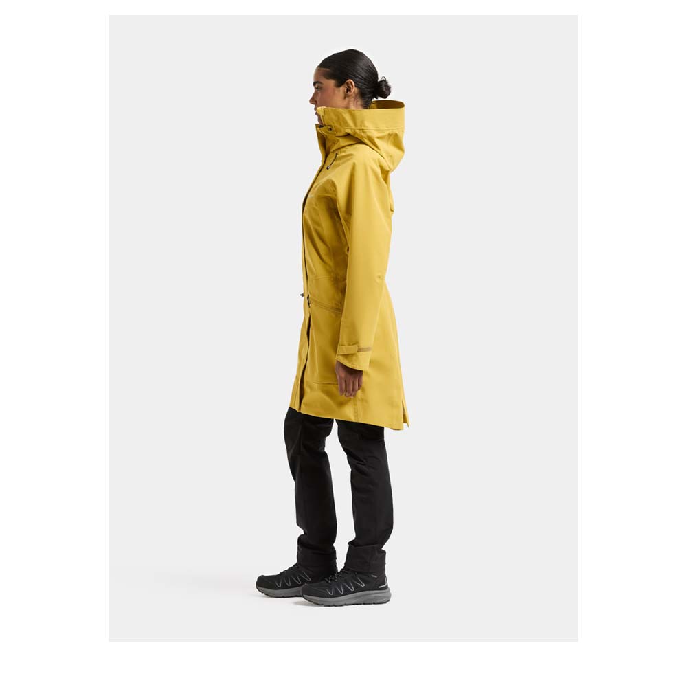 Der DIDRIKSONS Ilma Womens Parka 8 ist ein klassischer, ungefütterter Damenparka, der durch seine vollständige Wind- und Wasserdichtigkeit bei gleichzeitig hoher Atmungsaktivität besticht. Durch die Verwendung der Stormsystem-Technologie und komplett verschweißter Nähte bietet er optimalen Schutz gegen die Elemente. Das Material besteht aus einer weichen Polyesterqualität mit mattem Finish, was dem Parka einen hochwertigen Look verleiht. Der Einsatzbereich umfasst vor allem den Alltag sowie Outdoor-Aktivitäten bei unbeständigem Wetter im Frühjahr und Herbst. Ein wesentlicher Vorteil ist die Kombination aus funktionalem Wetterschutz und einem eleganten Design, das durch eine verstellbare Taille und verstellbare Ärmelbündchen individuell angepasst werden kann. Der Parka ist mit einem Zwei-Wege-Frontreißverschluss, einer fest gewachsenen, verstellbaren Kapuze und mehreren praktischen Taschen, darunter vier Fronttaschen und zwei Innentaschen, ausgestattet. Die PFC-freie wasserabweisende Beschichtung unterstreicht den nachhaltigen Ansatz von Didriksons und macht den Ilma Parka zu einem langlebigen Begleiter für anspruchsvolle Kundinnen.
