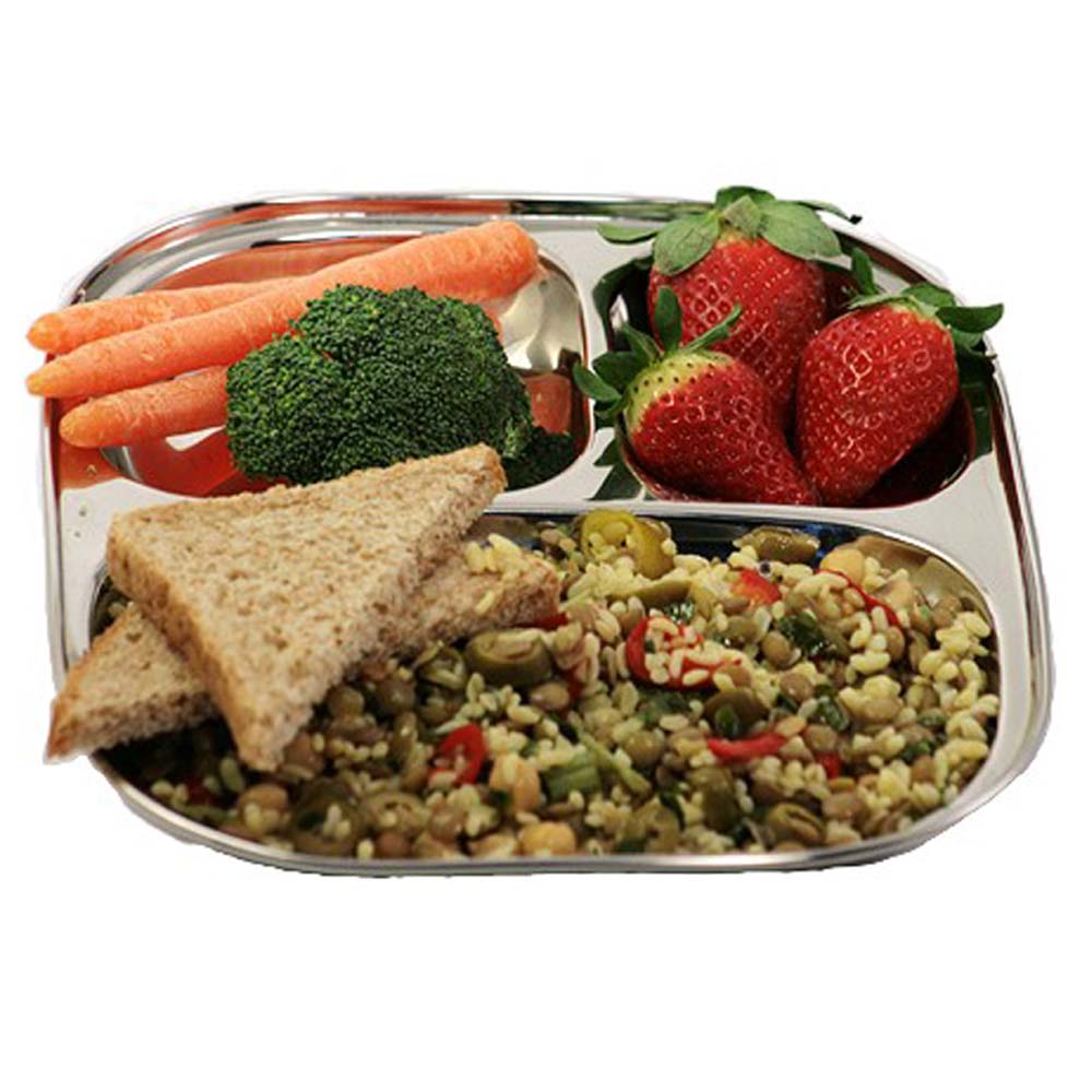 Der ECO Brotbox Thali Teller bietet die Möglichkeit, drei verschiedene Speisen zu servieren, ohne dass sie vermischt werden. Aufgrund der Unzerbrechlichkeit und Robustheit eignen sich diese Teller ideal für Outdoor-Einsätze.