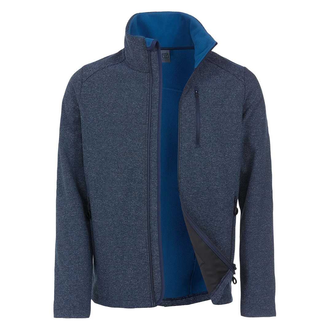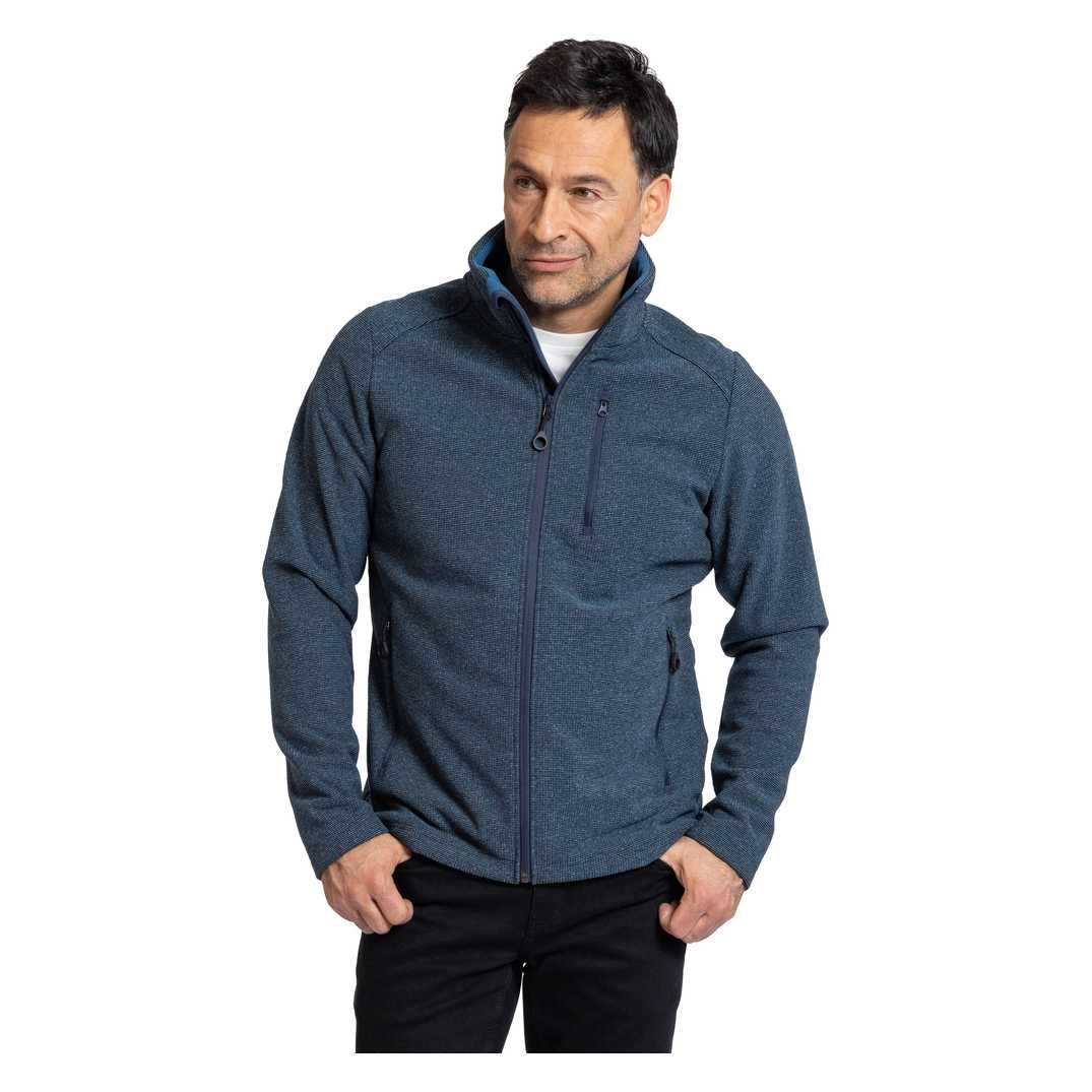 Diese warme Strickfleecejacke verfügt über eine winddichte Membrane und ist atmungsaktiv mit einer Leistung von 5.000 g/m²/24h. Der melierte Strickstoff auf der Außenseite verleiht der Jacke einen modernen und ansprechenden Look, während das weiche Fleece auf der Innenseite für wohlige Wärme sorgt. Ein Stehkragen und der hinterlegte YKK-Frontreißverschluss mit Kinnschutz bieten zusätzlichen Schutz vor Wind und Kälte.