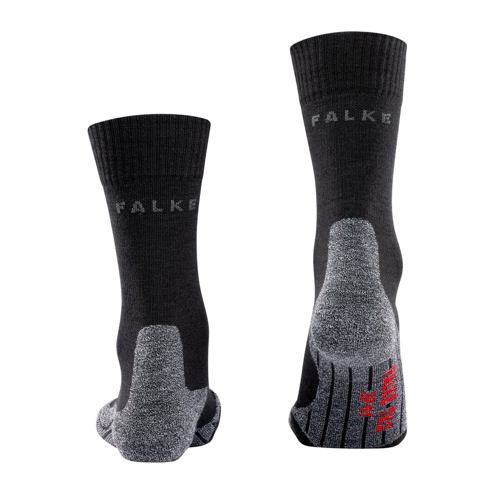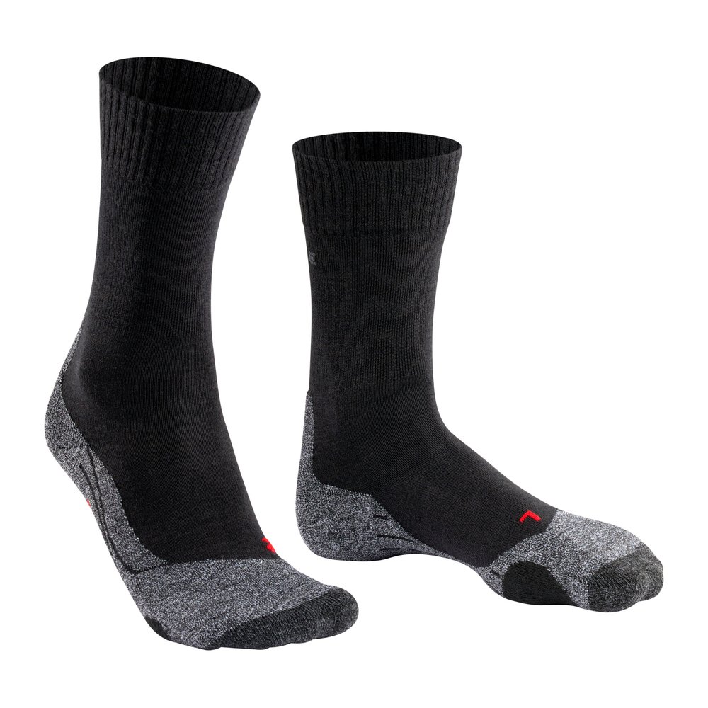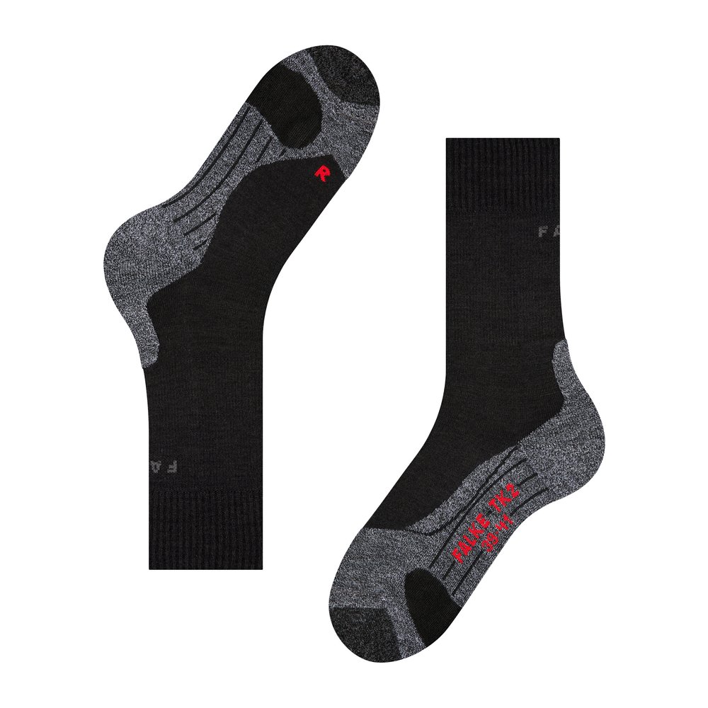 Die FALKE TK2 Explore Women sind vielseitige Wandersocken für Damen, die dich bei Touren im Mittelgebirge, auf Tageswanderungen, Trekkingtouren oder Pilgerwegen zuverlässig begleiten. Die mittelstarke Polsterung bietet eine ausgewogene Kombination aus Komfort und Schutz und ist ideal für leichte Wander- und Trekkingschuhe der Kategorien A-B. Dank der feuchtigkeitsableitenden 3-Lagen-Konstruktion bleiben deine Füße auch auf langen Strecken angenehm trocken und das Risiko von Blasen wird reduziert. Die thermoregulierende Merinowollmischung sorgt für ein ausgeglichenes Fußklima – sie wirkt bei warmen Temperaturen angenehm kühlend und isoliert zuverlässig bei Kälte. Ergänzt wird dies durch geruchshemmende Eigenschaften, schnelle Rücktrocknung und eine dämpfende Wirkung. Die anatomische L/R-Passform mit speziell auf schmalere Frauenfüße abgestimmter Konstruktion gewährleistet einen präzisen Sitz und hohen Tragekomfort bei Sommer- wie Winterwanderungen. Die enthaltene Wolle stammt aus einem nachwachsenden Rohstoff, während die robuste Materialmischung auf Langlebigkeit und intensive Nutzung ausgelegt ist.