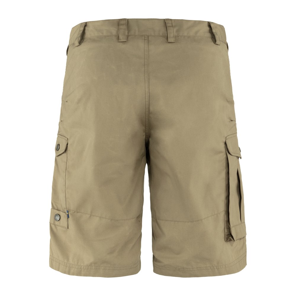 Die FJÄLLRÄVEN Barents Pro Shorts Men ist eine robuste Trekking-Shorts aus wind- und wasserabweisendem G-1000 Original, mit doppelten Stofflagen auf der Rückseite für zusätzliche Strapazierfähigkeit. Praktische Taschen, die Platz für alles bieten, was man schnell zur Hand haben möchte: zwei Hand- und eine große Kartentasche mit Patte und Handy-Innentasche am rechten Bein sowie zwei Beintaschen und eine Axttasche am linken Bein. Mittlere Taille und normale Passform.